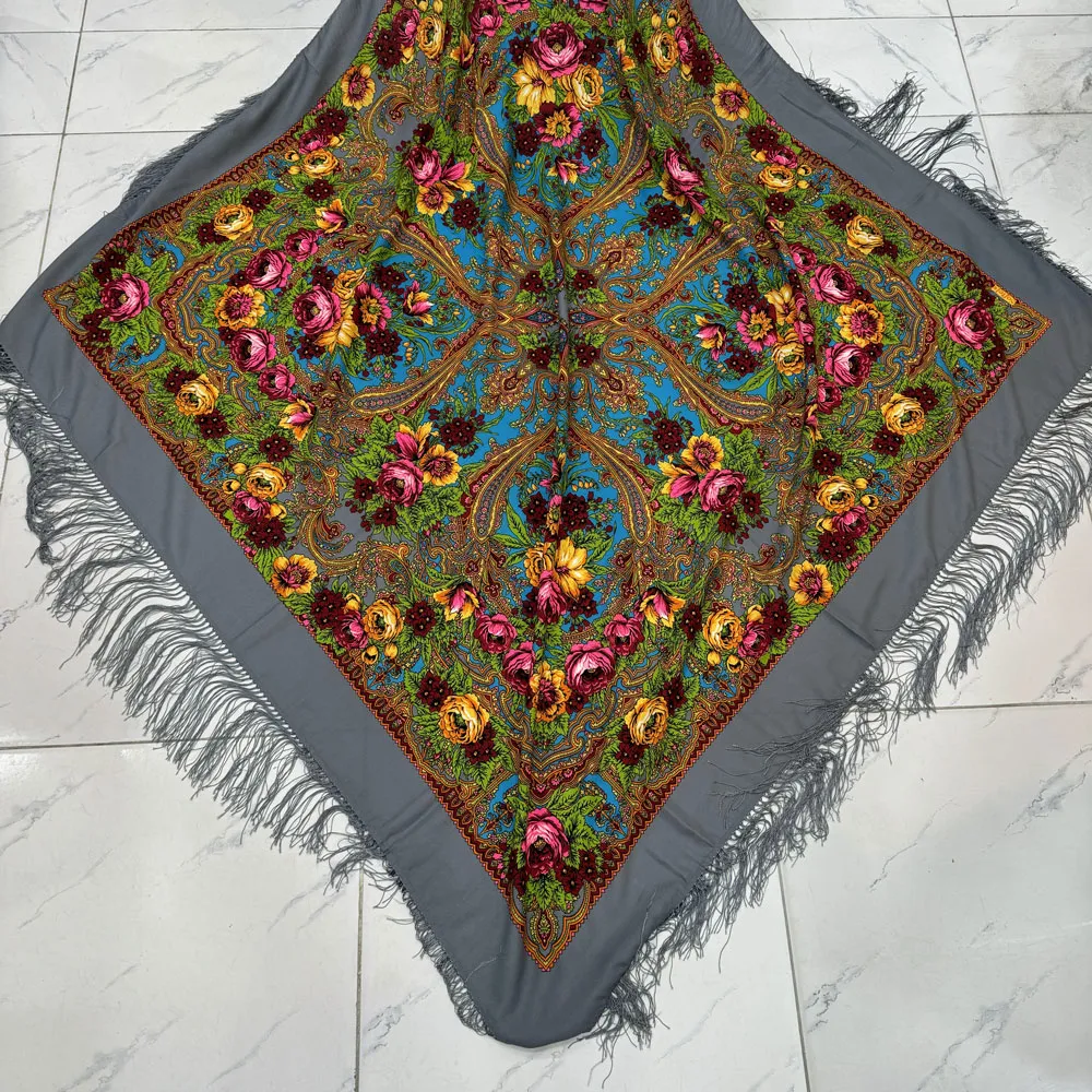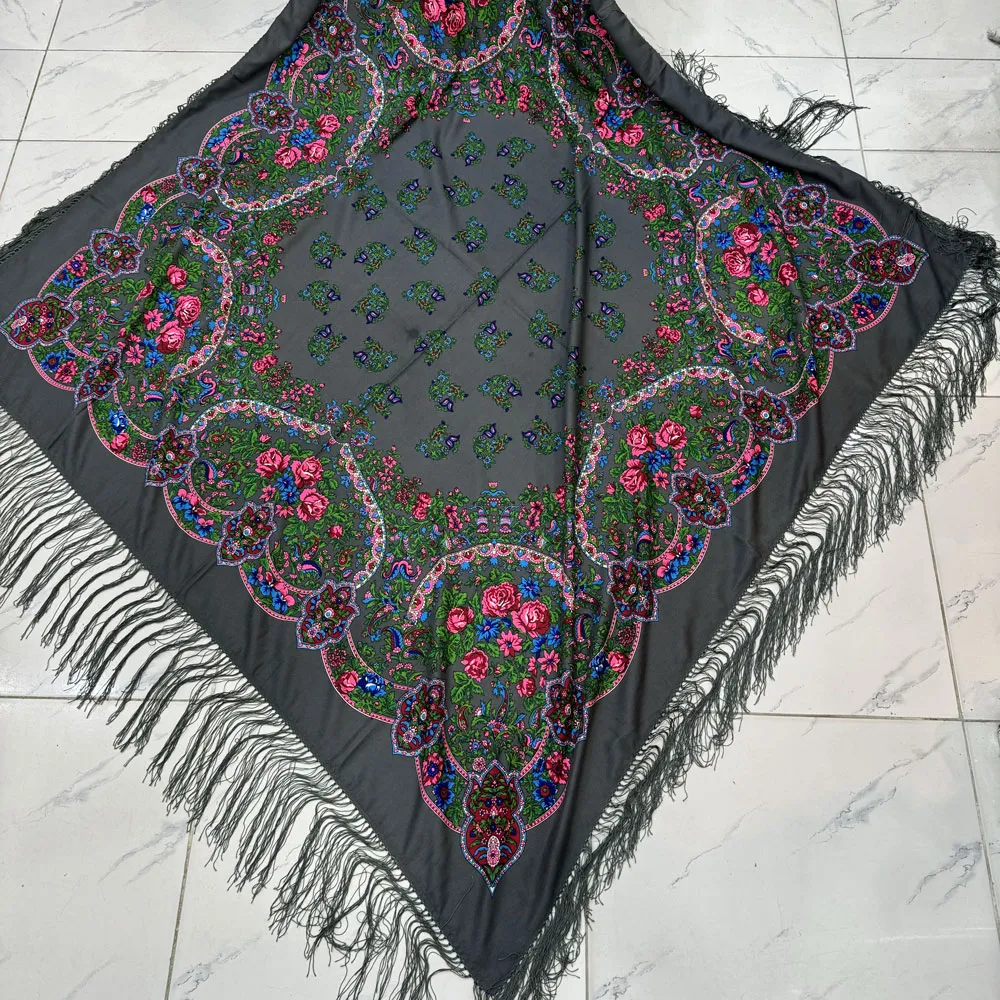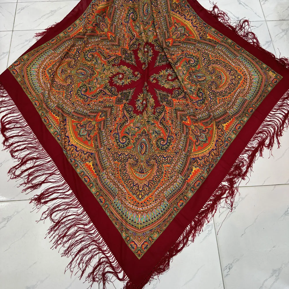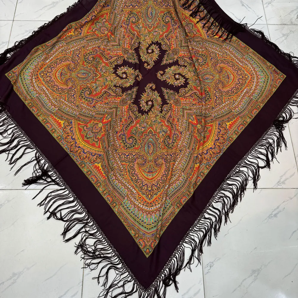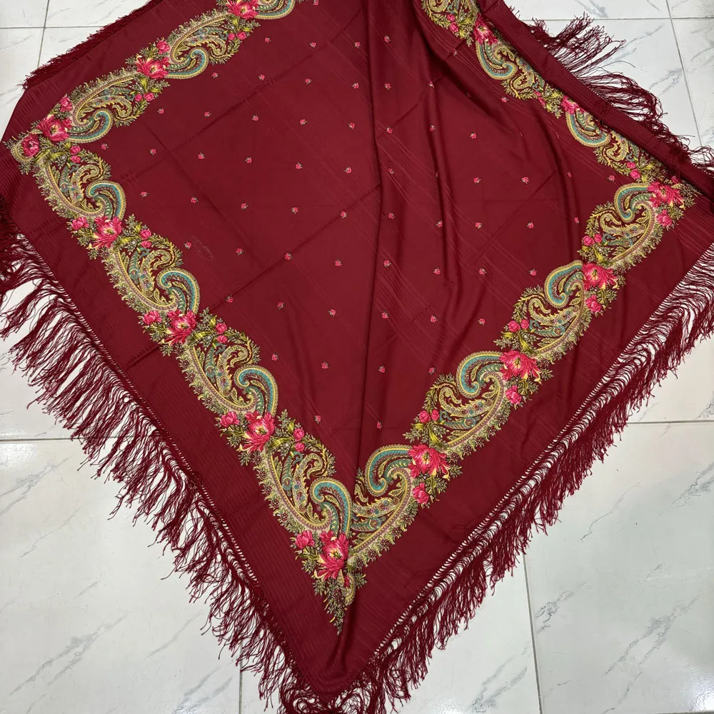 روسری نخی ترکمن قواره بزرگ کد 1659 وارداتی ترکیه ریشه دستباف چهار فصل