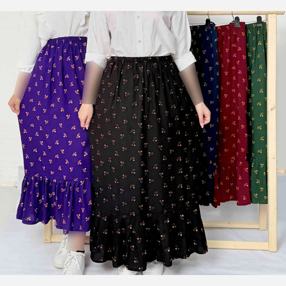 دامن نخی زنانه گلریز فری سایز تا 50 قد 95 سانتیمتر چهارفصل شیک و راحت بدون بدن نما