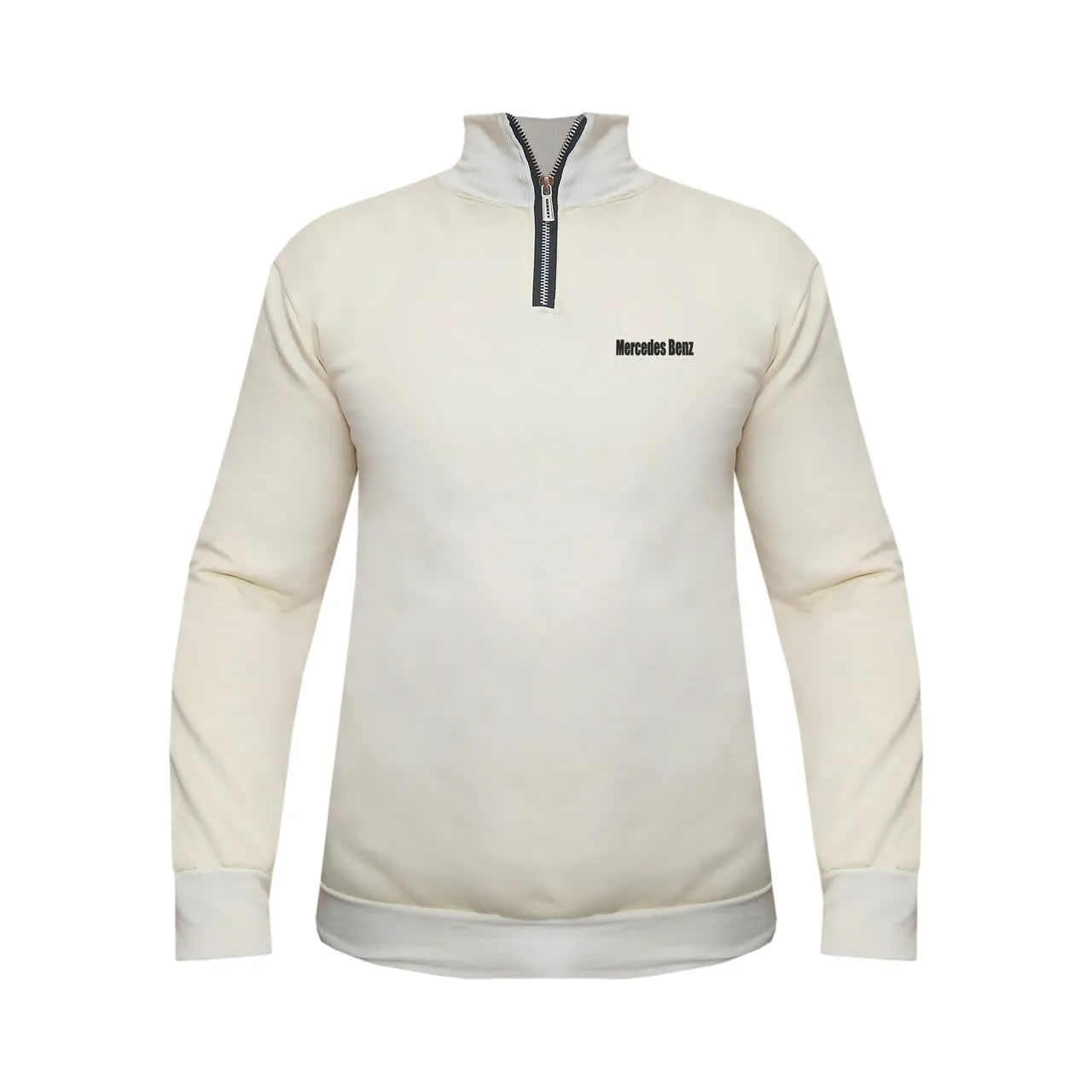 هودی نیم زیپ مردانه دورس اسپان داخل کرک طرح benz مدل d7554 کرم سایز L XL 2XL