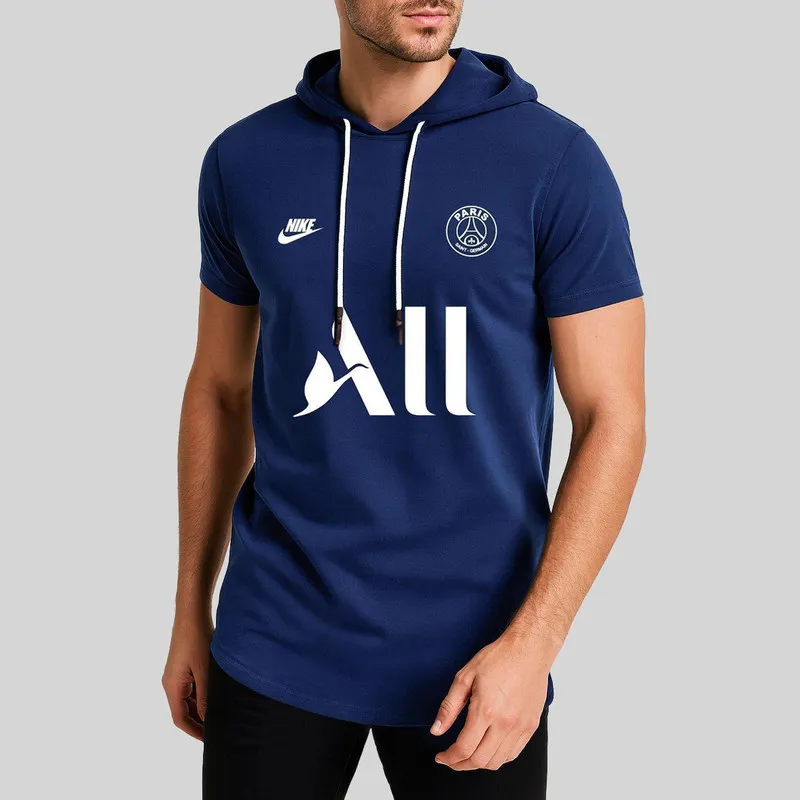 تیشرت کلاه دار مردانه طرح پاریس مدل 906291 سرمه ای نخ آستین کوتاه اسپرت روزمره