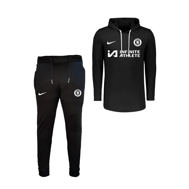 ست تی شرت و شلوار مردانه نخی آستین بلند کلاهدار دمپا کش زیپ دار