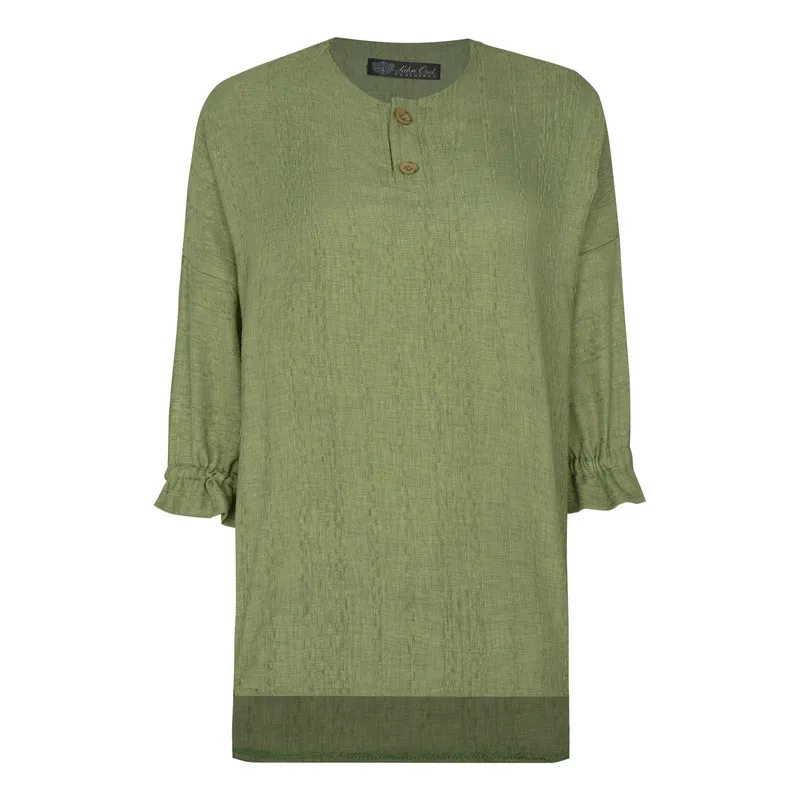 شومیز زنانه آستین سه ربع یقه دکمه دار مدل سوفیا سبز سدری مراکشی ساده کد8373