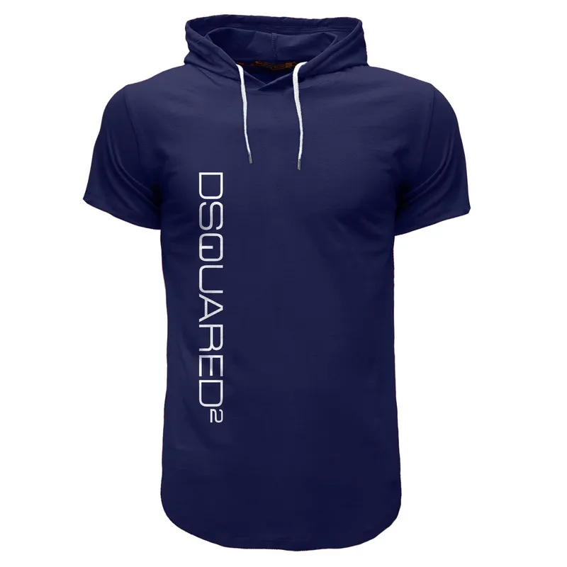 تیشرت کلاه دار مردانه مدل 001051 سرمه ای نخ یقه گرد آستین کوتاه ساده