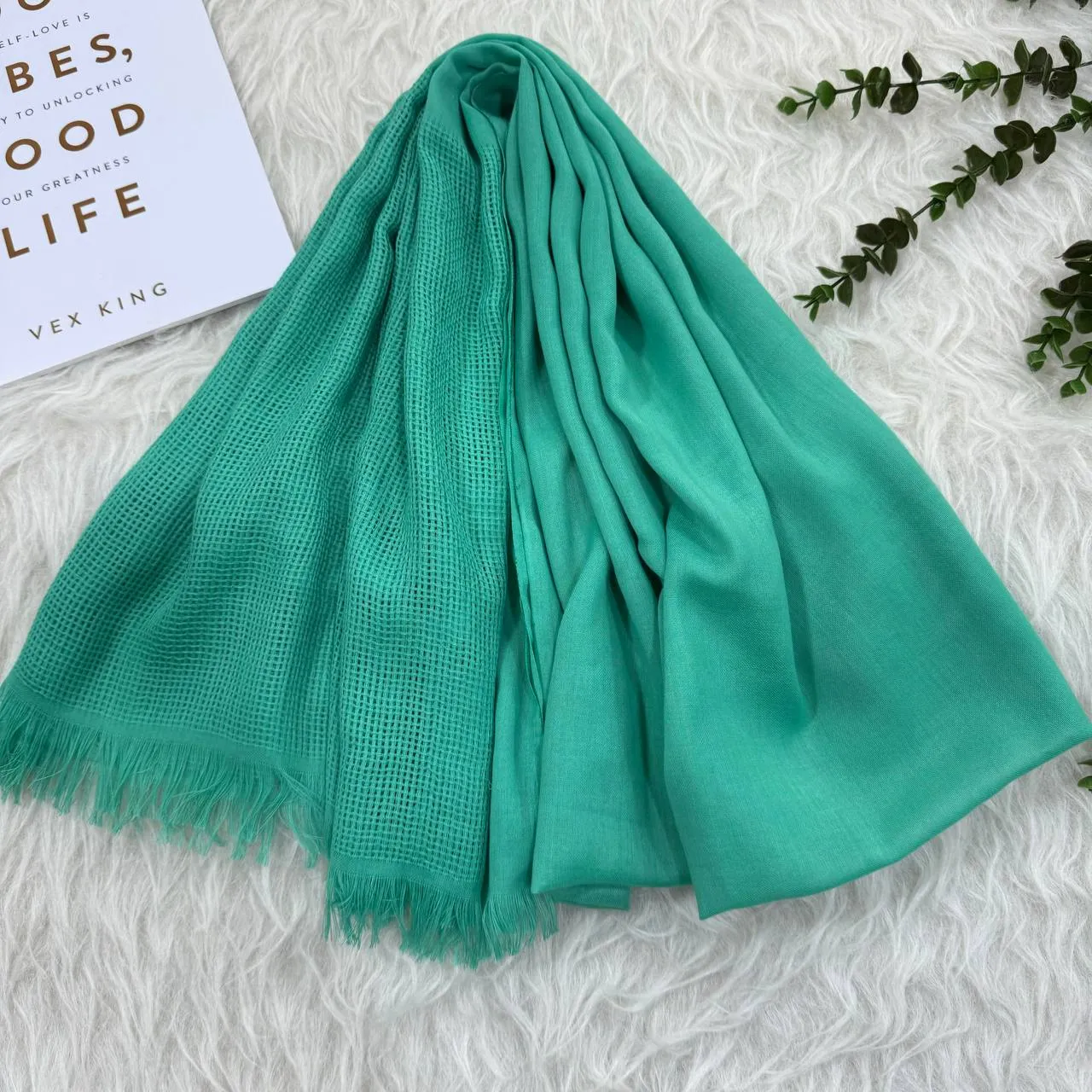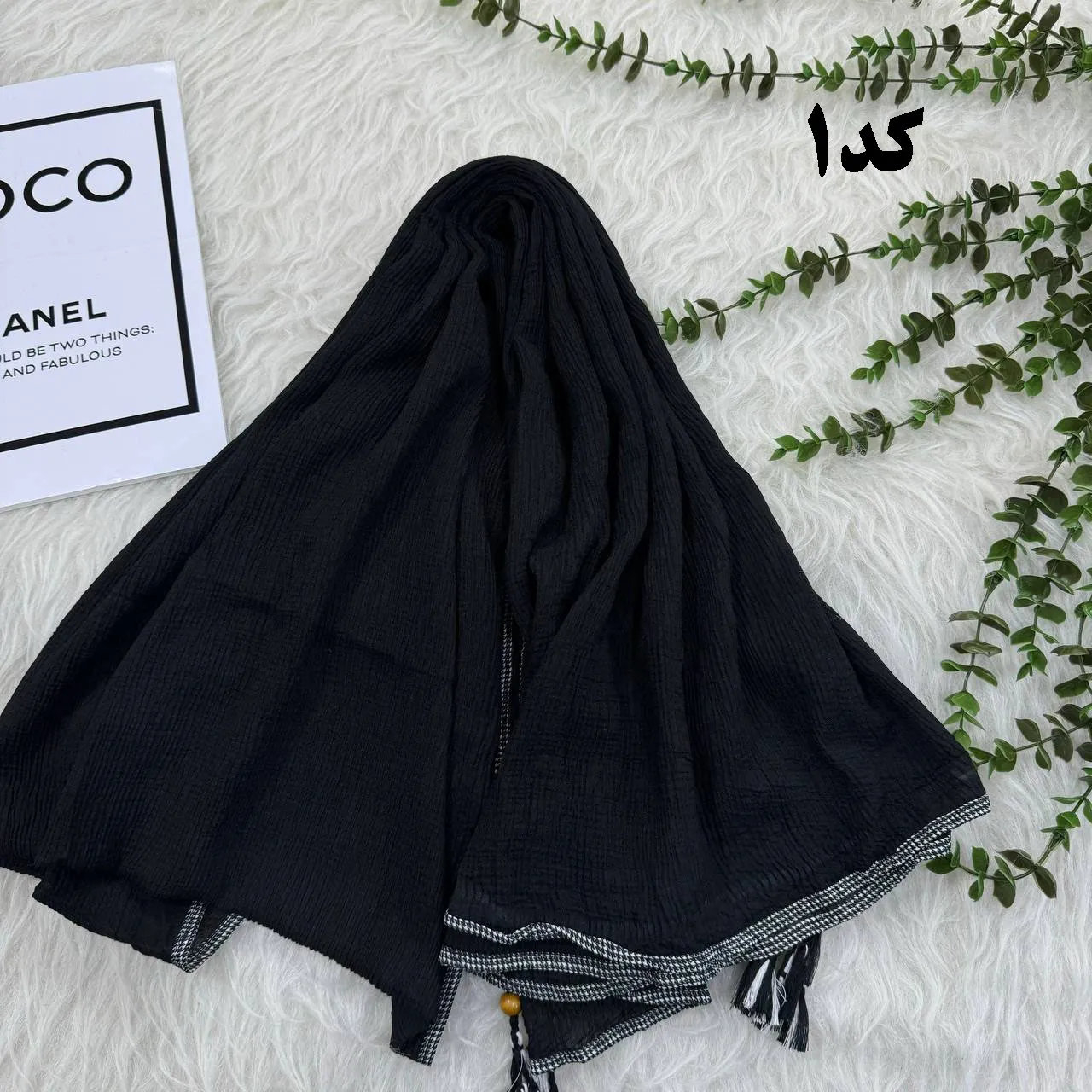 شال حاشیه توری نخی قواره بزرگ 180x65 سانتیمتر مناسب استفاده روزمره بدون پرز و دون دون شدن