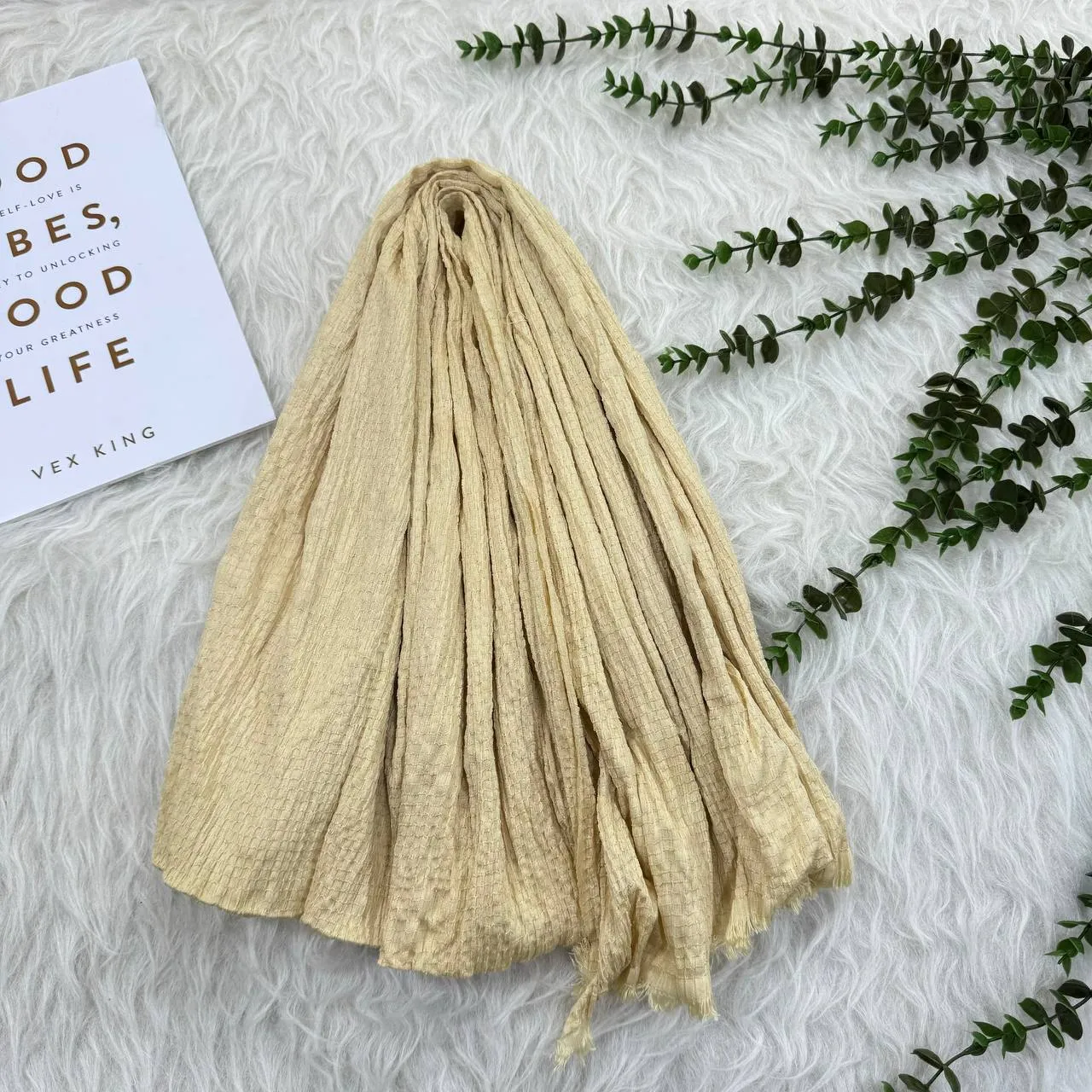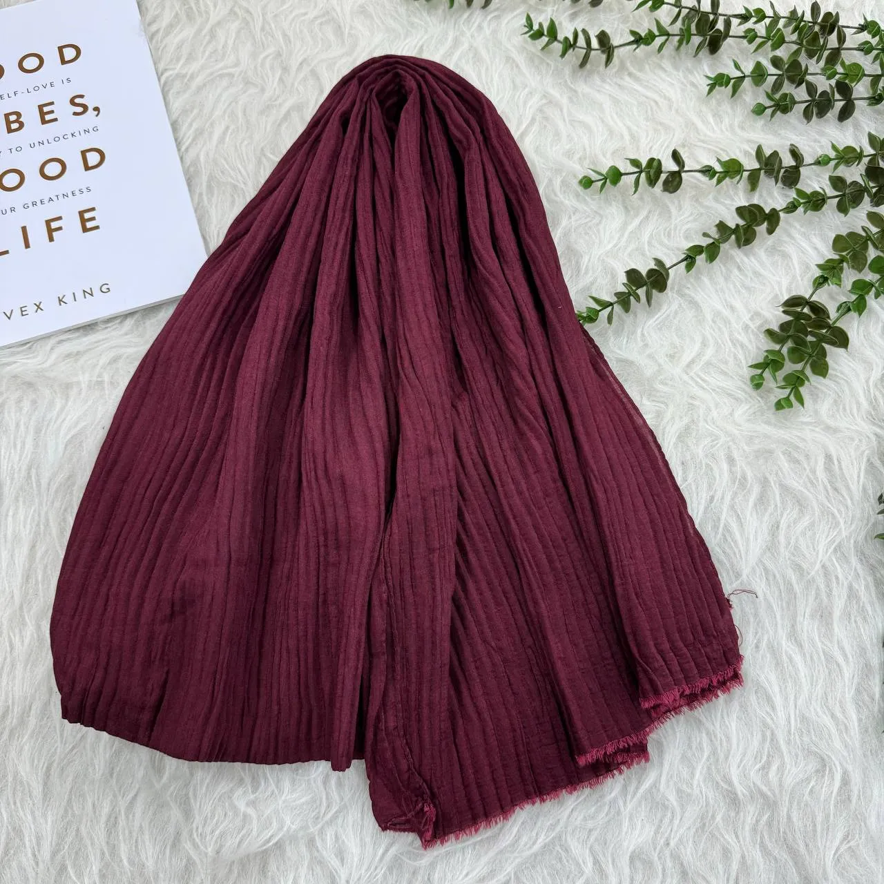 شال پلیسه نخی ساده زنانه قواره بزرگ 190x70 سانتیمتر بدون آبرفت و چروک