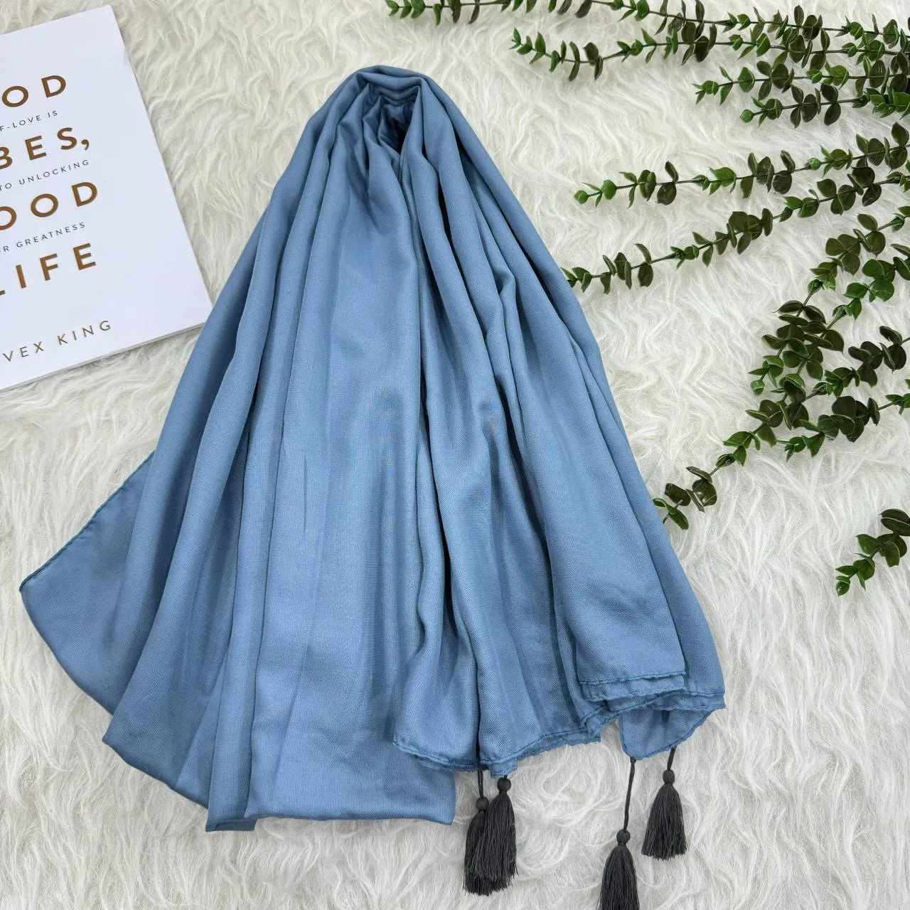شال نخی ساده منگوله دار قواره بزرگ 190x75 زنانه کد 1005