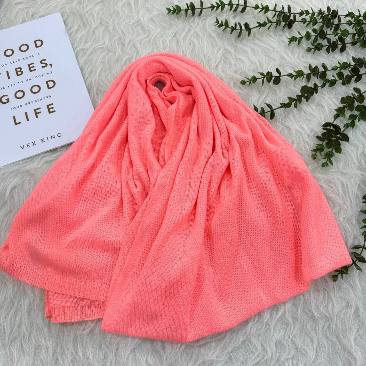 شال بافت ساده زنانه قواره بزرگ 200x65 سانتیمتر بدون آبرفت و رنگ رفت