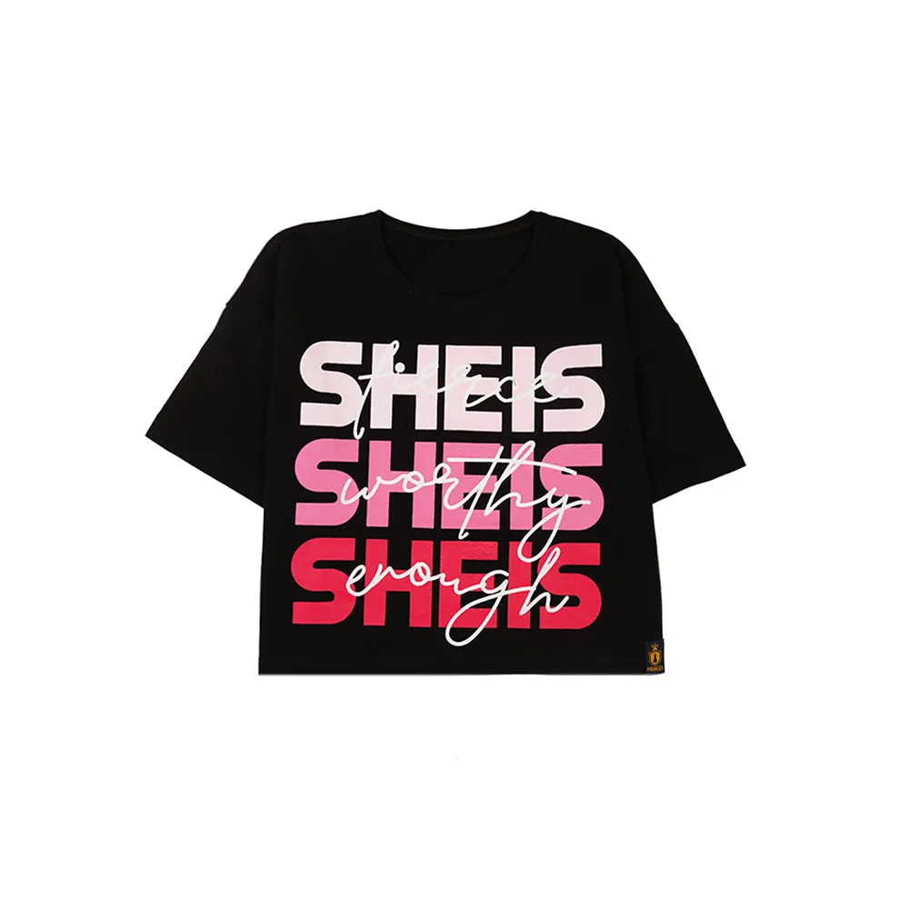 تیشرت کراپ زنانه طرح SHEIS نخ و پنبه سایز فری