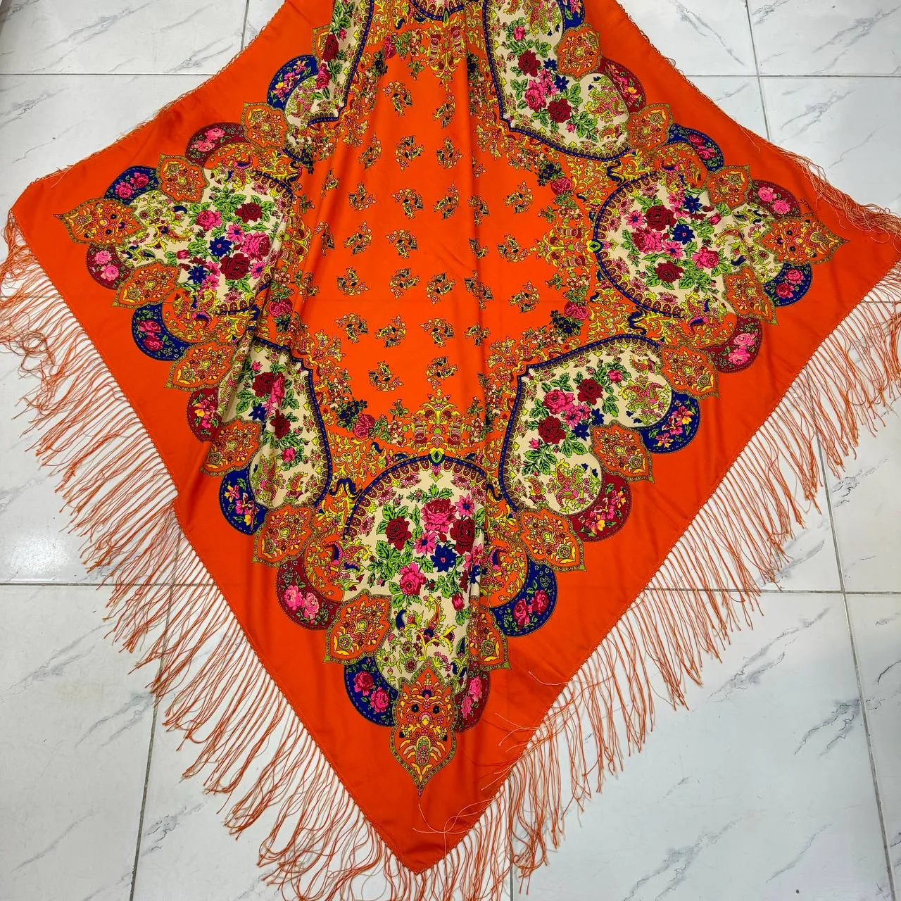 روسری ترکمن اصل ترکیه قواره بزرگ جنس نخی ریشه دستباف چهار فصل کد 1399