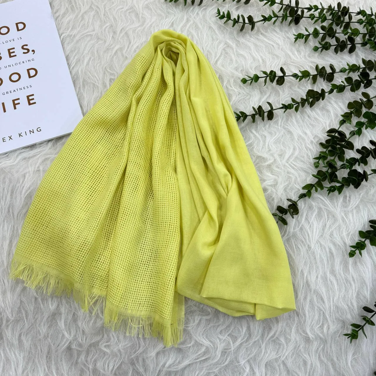 شال حاشیه توری نخی قواره بزرگ 180x65 سانتیمتر مناسب استفاده روزمره بدون پرز و دون دون شدن