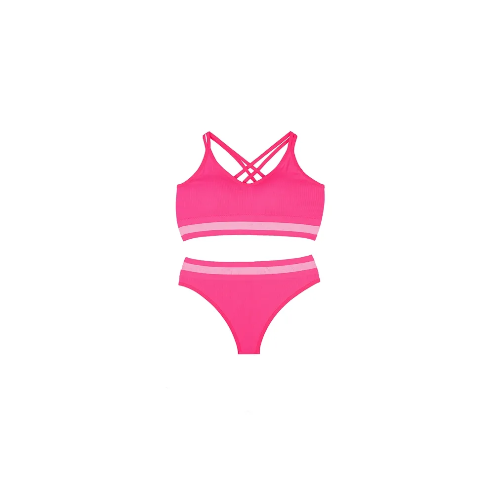 ست نیم تنه و شورت لامبادا کبریتی پشت بندی اسپرت فانریپ فری سایز