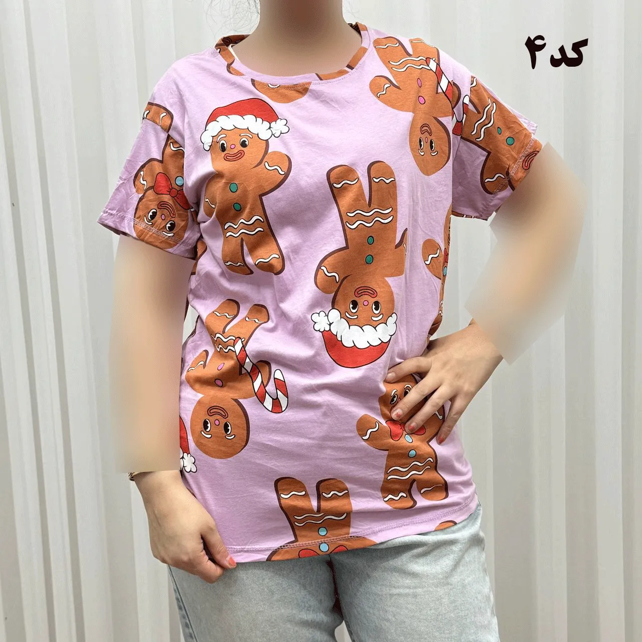 تیشرت طرحدار H&M کد 1169 نخ پنبه چهارفصل زنانه دخترانه تنخور راحت