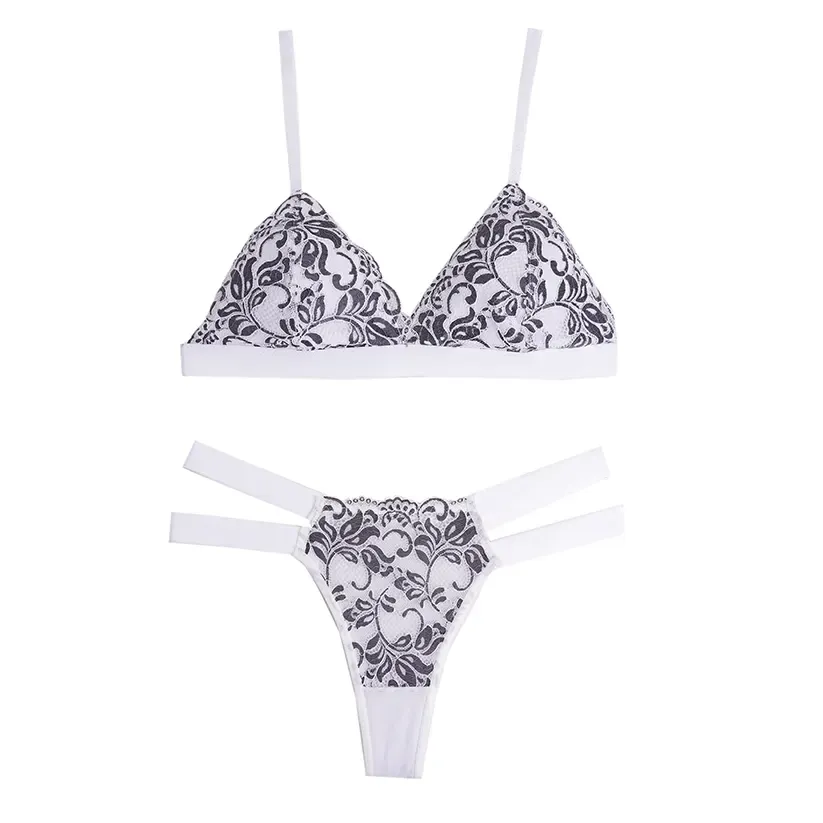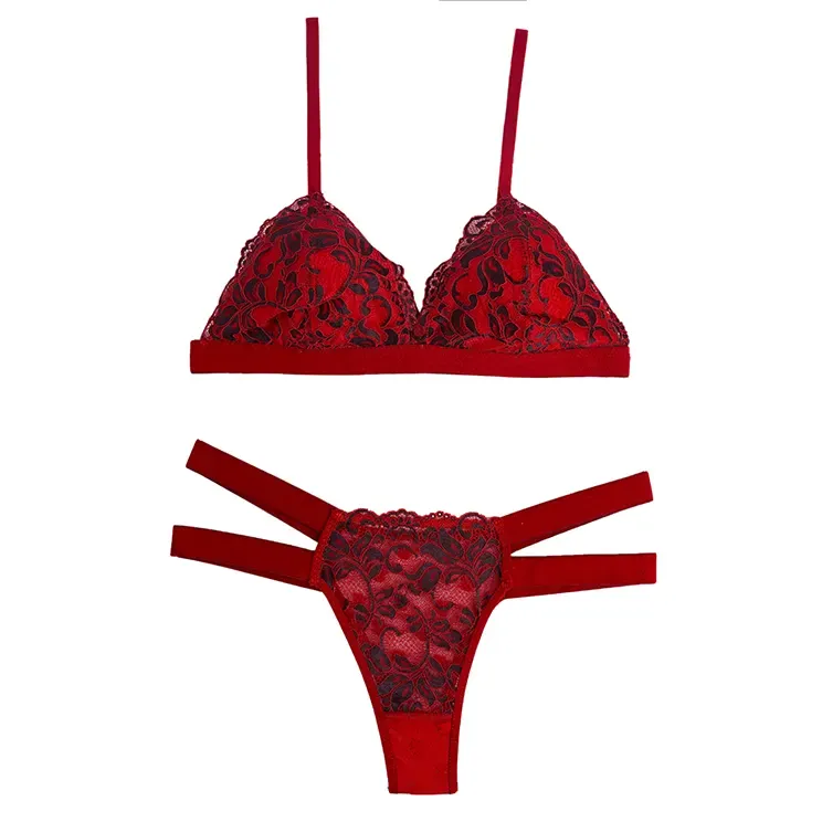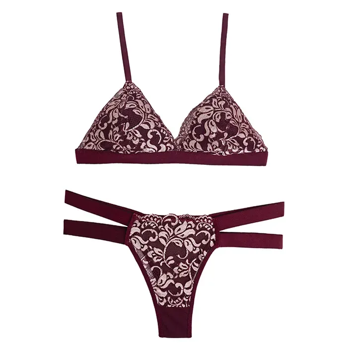 ست شورت و سوتین سه گوش دانتل برجسته برند شارمین کاپ B بدون جک و فنر بکلس فانتزی