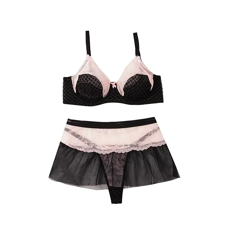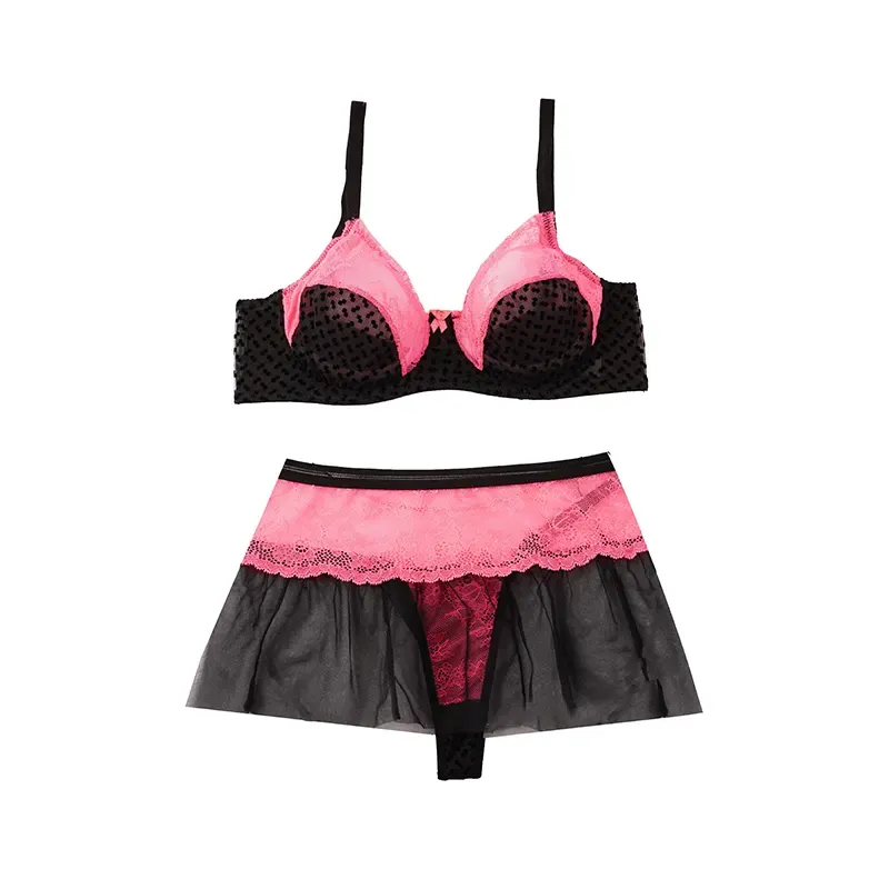ست شورت و سوتین سه تیکه دامن دار شارمین سایز 75 تا 90 فنردار لامبادا تور دانتل کاپ B