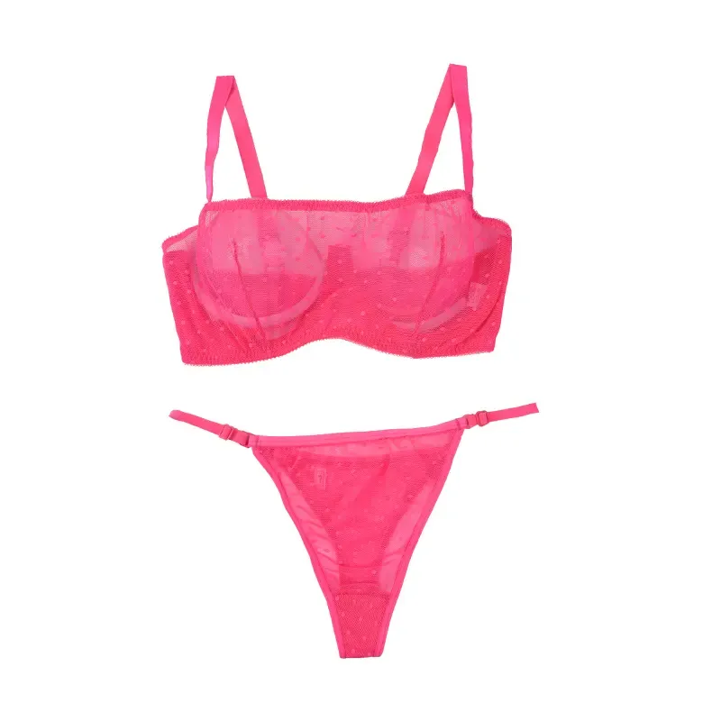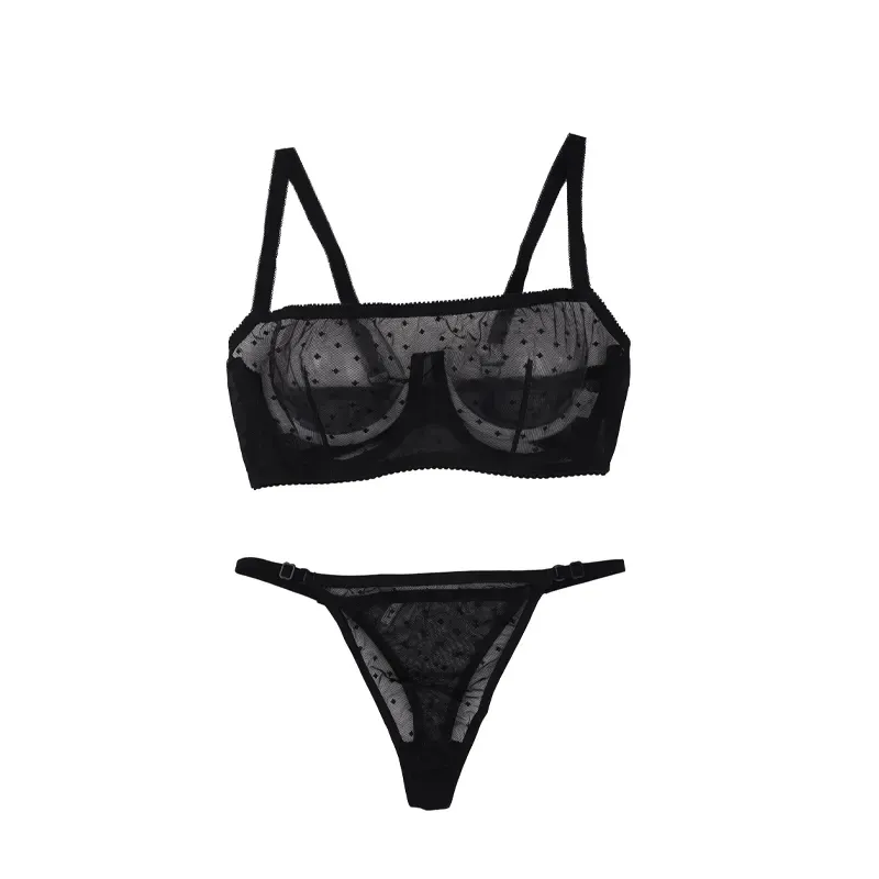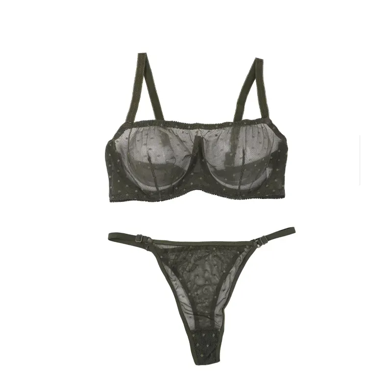 ست شورت و سوتین توری خالدار براگور فنردار بدون کاپ بکلس ضد حساسیت زنانه
