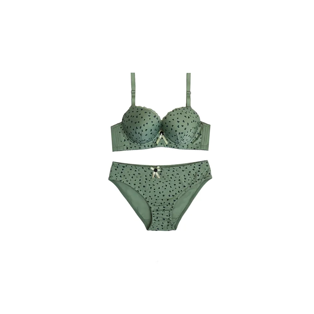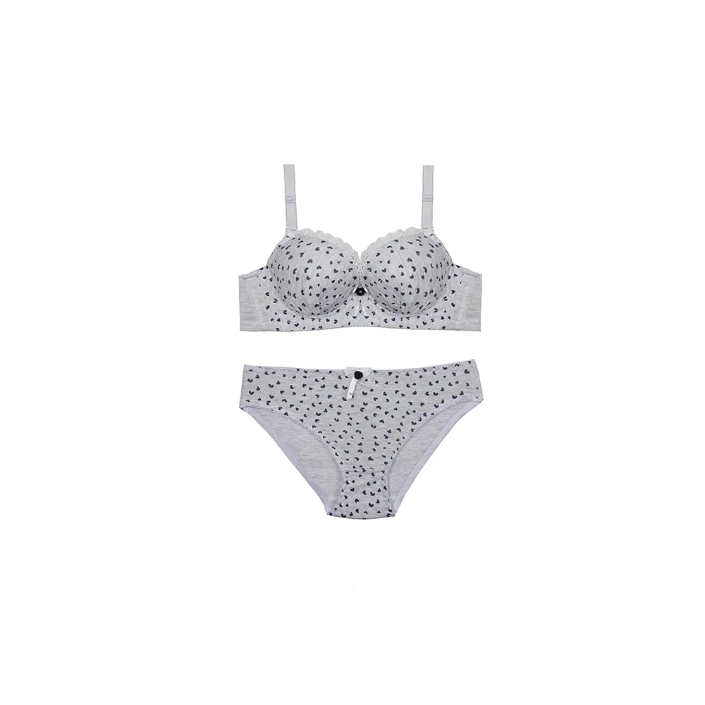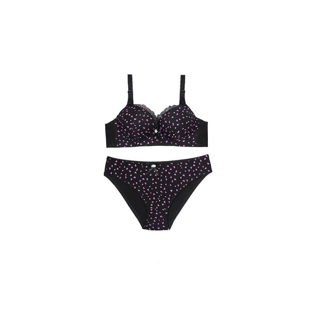 این ست جذاب، انتخابی عالی برای دختران شیکپوش است. سوتین این ست نیم جک و فنردار بوده و با داشتن اسفنج، راحتی بیشتری را فراهم میکند. طرح تمام چاپ قلب، جلوهای دوستداشتنی به آن بخشیده است. جنس نخ بهکار رفته در این ست، لطافت و سبکی را برای شما به ارمغان میآورد.