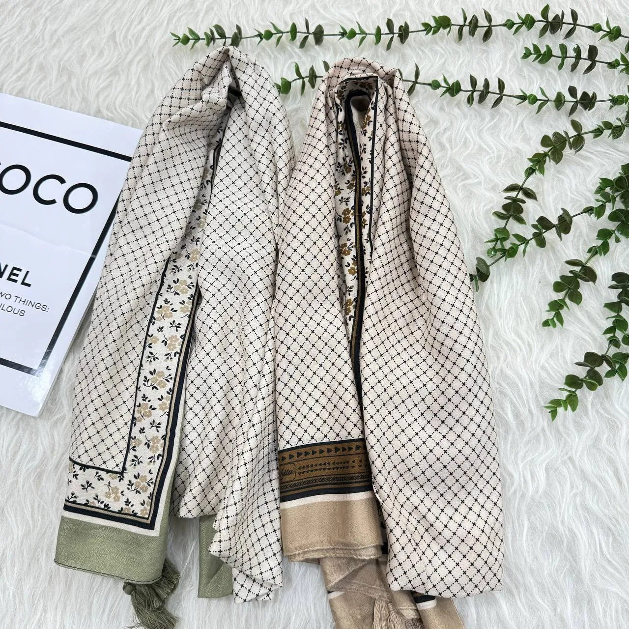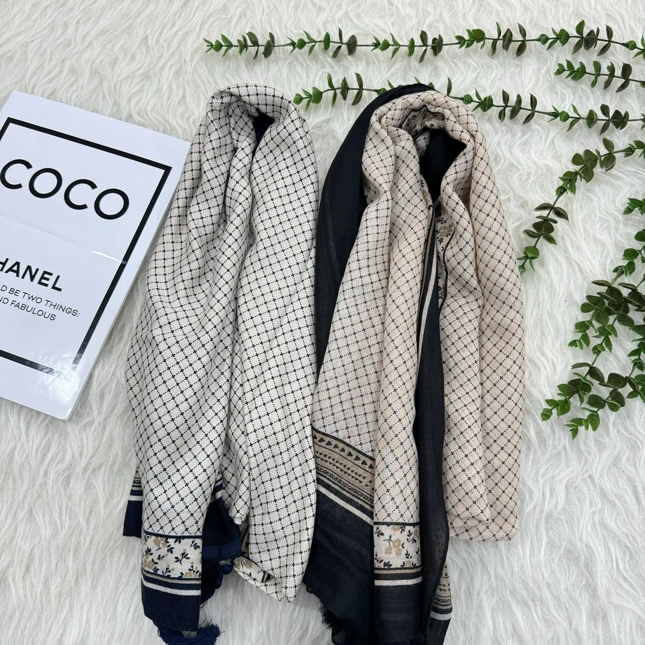 شال نخی طرحدار سی آی اسکارف کد 865 قواره 185×70 سانت عدم آبرفت و رنگرفتگی