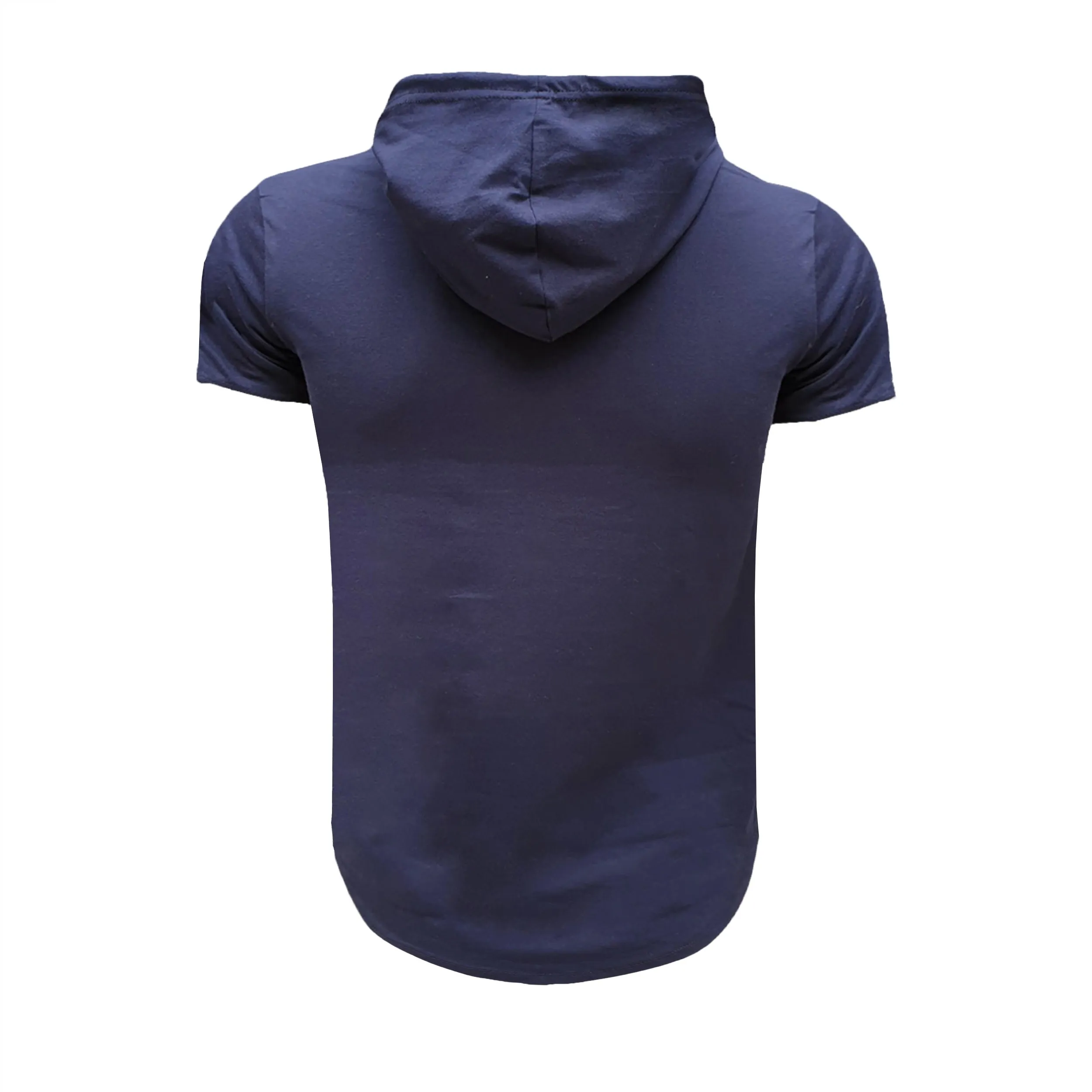 تی شرت آستین کوتاه کلاه دار مردانه سورمه ای طرح dream سایز L XL XXL