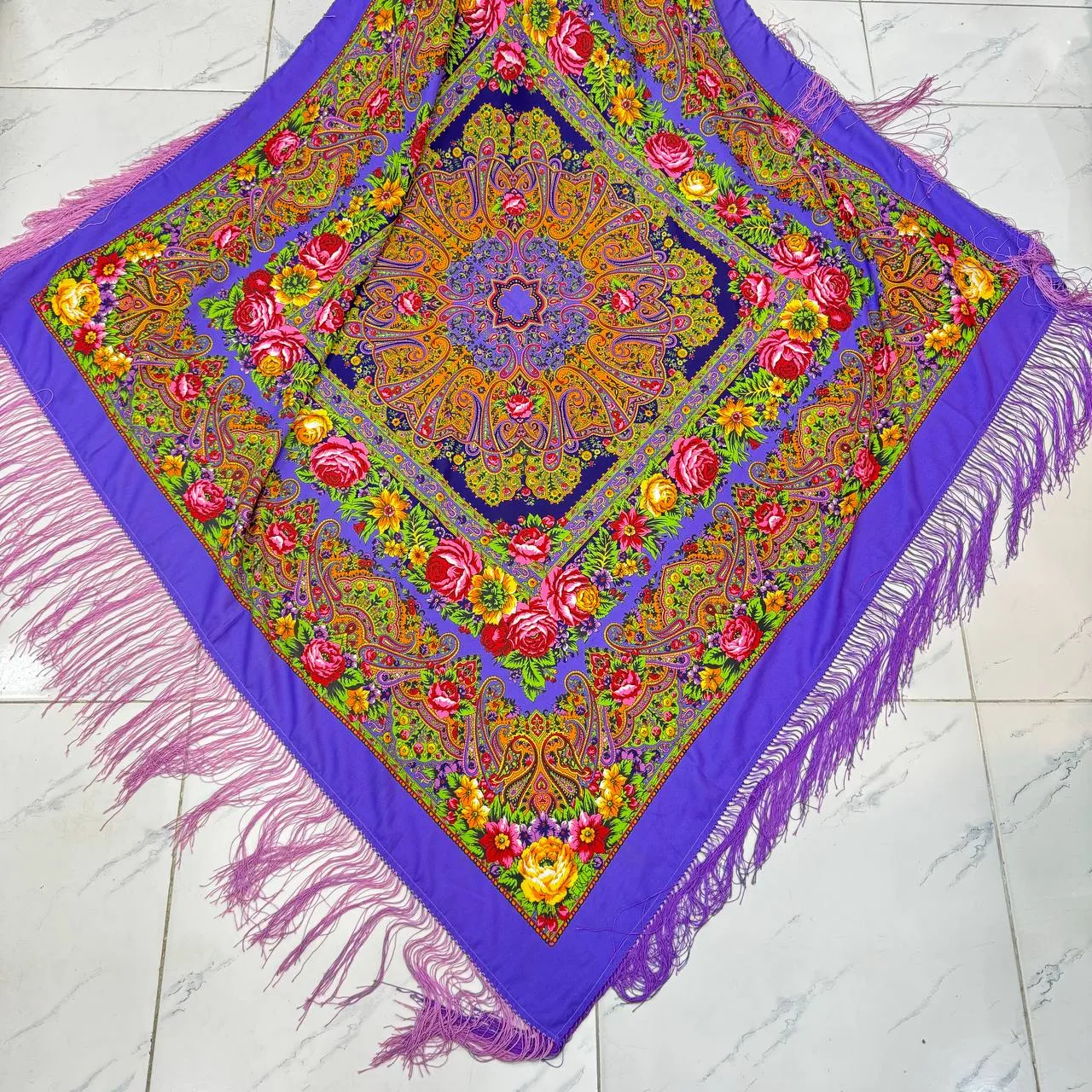 روسری ترکمن اصل زنانه کد 1383 نخی وارداتی ترکیه قواره 140-150 سانت ریشه دستباف 4 فصل