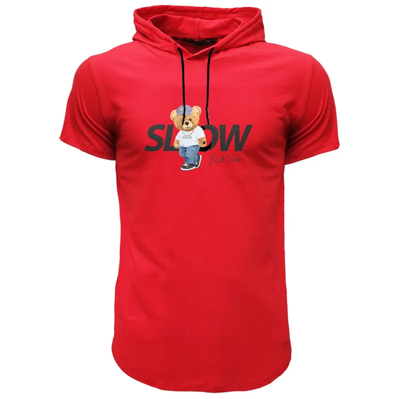 تی شرت کلاه دار آستین کوتاه مردانه نخی اسپرت روزمره مدل 14020825b