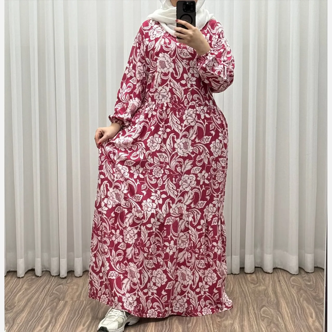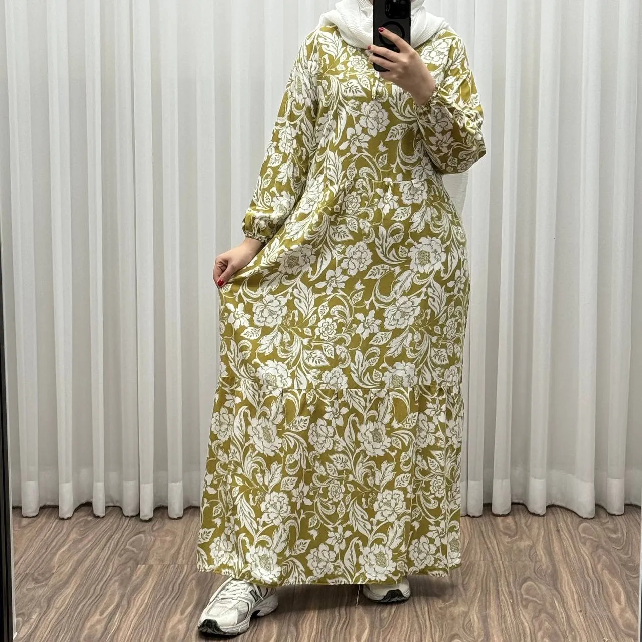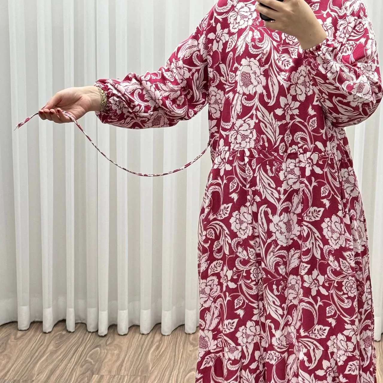 پیراهن فلور نخی فری سایز تا 50 بنددار چهارفصل زنانه شیک راحت