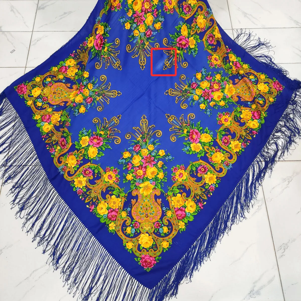 روسری نخی ترکمن قواره 140*140 کد R100178 وارداتی ترکیه ریشه دستباف