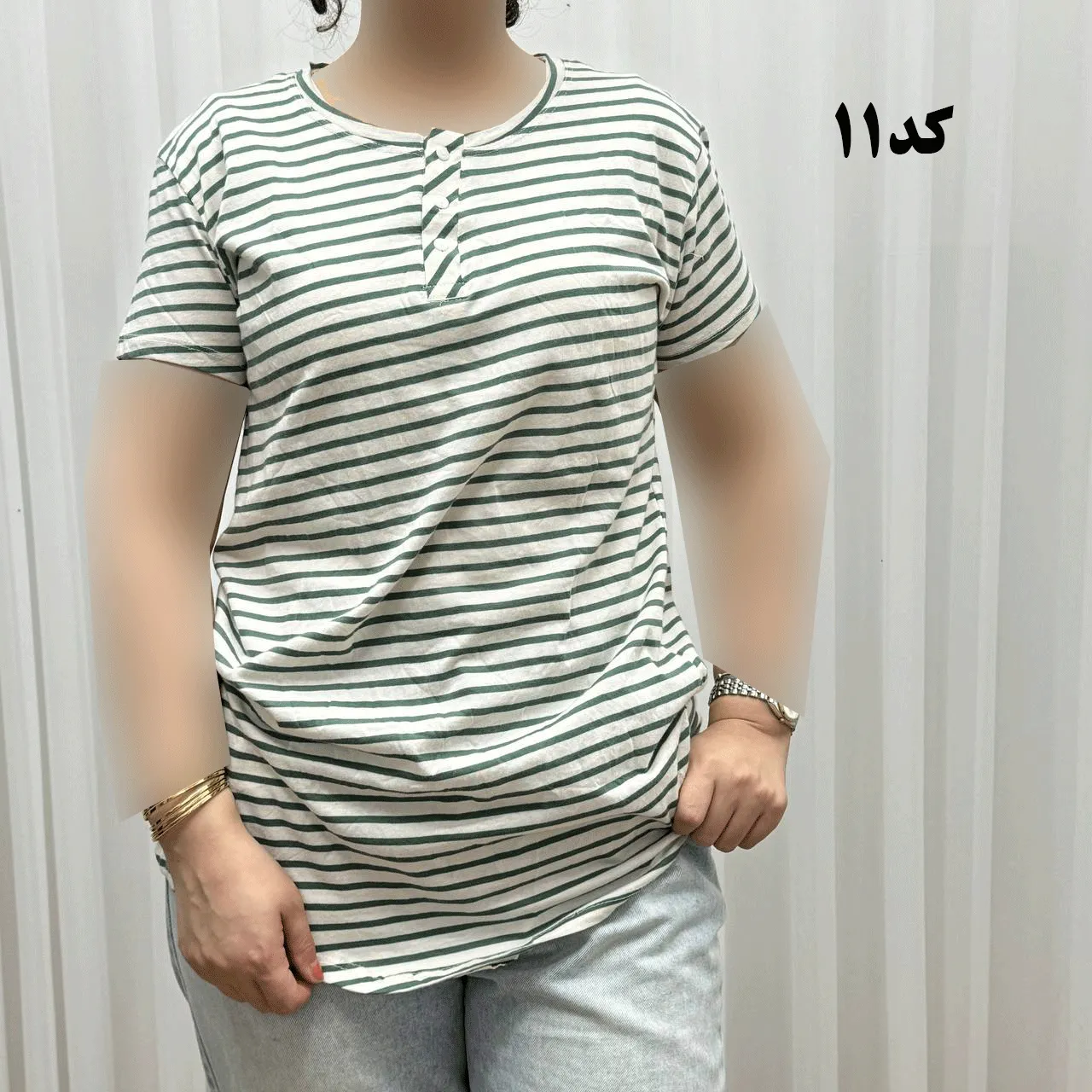 تیشرت نخی پنبه H&M جلودکمه کد 1164 چهارفصل زنانه و دخترانه تنخور راحت سایزبندی کامل