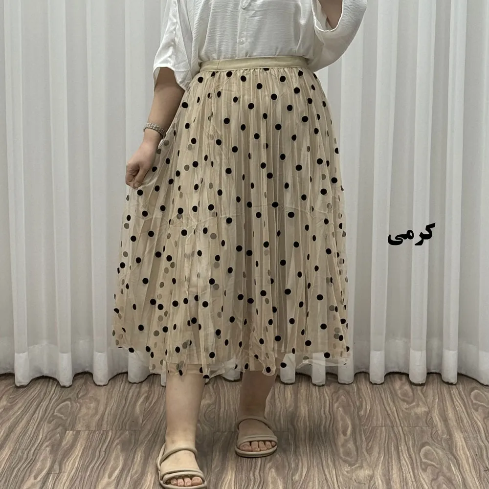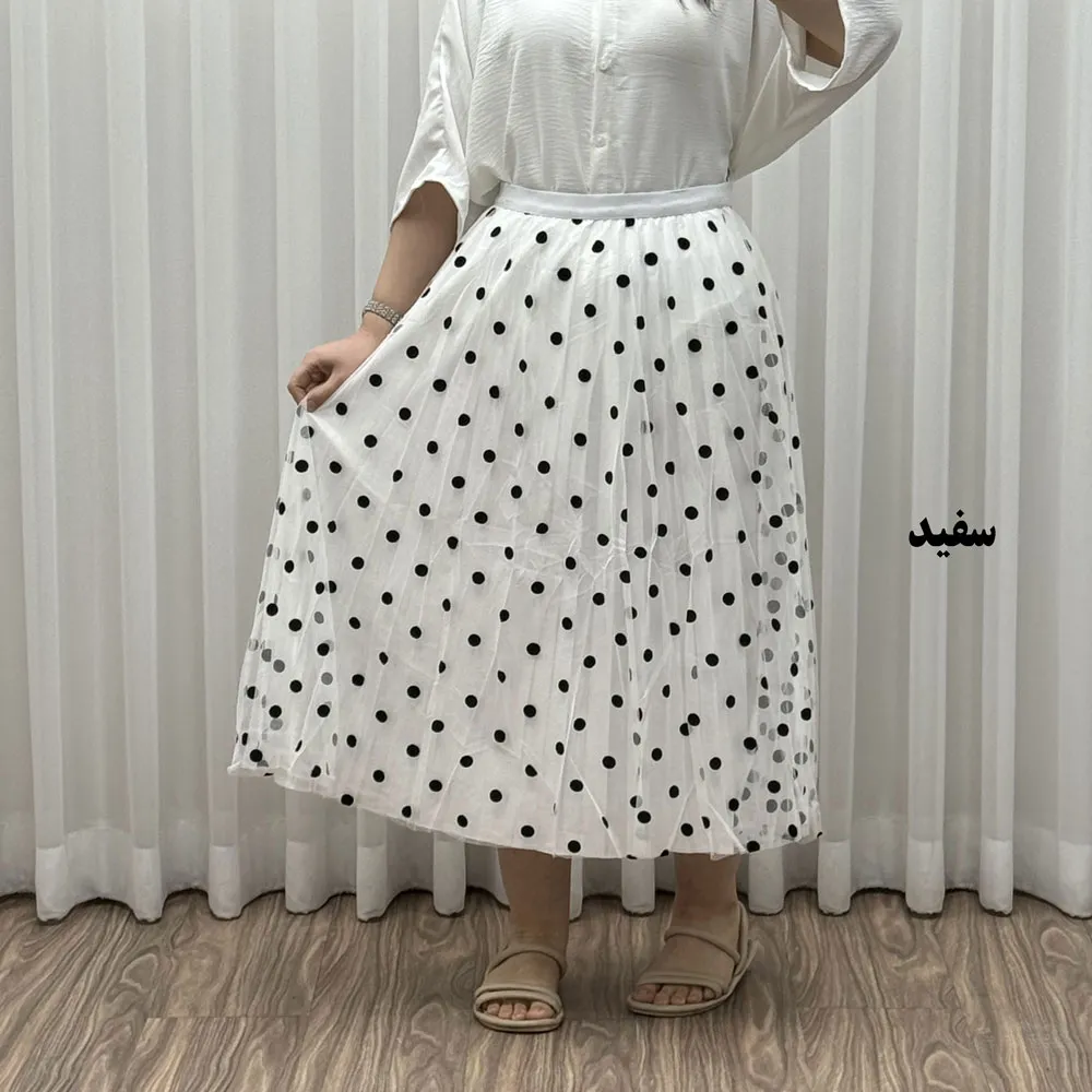 دامن گیپور خال خالی زنانه فری سایز شیک و راحت مناسب تا سایز 46 چهارفصل