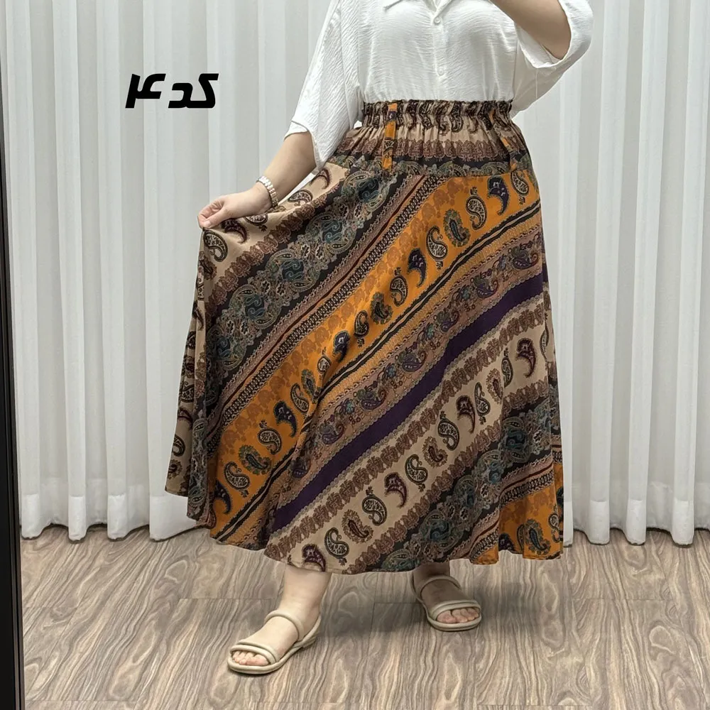 دامن وارداتی اندونزی مدل دنیا کد 1611 فری سایز تا 48 قد 95 سوپر نخ چهارفصل آستر دار بدون بدن نما