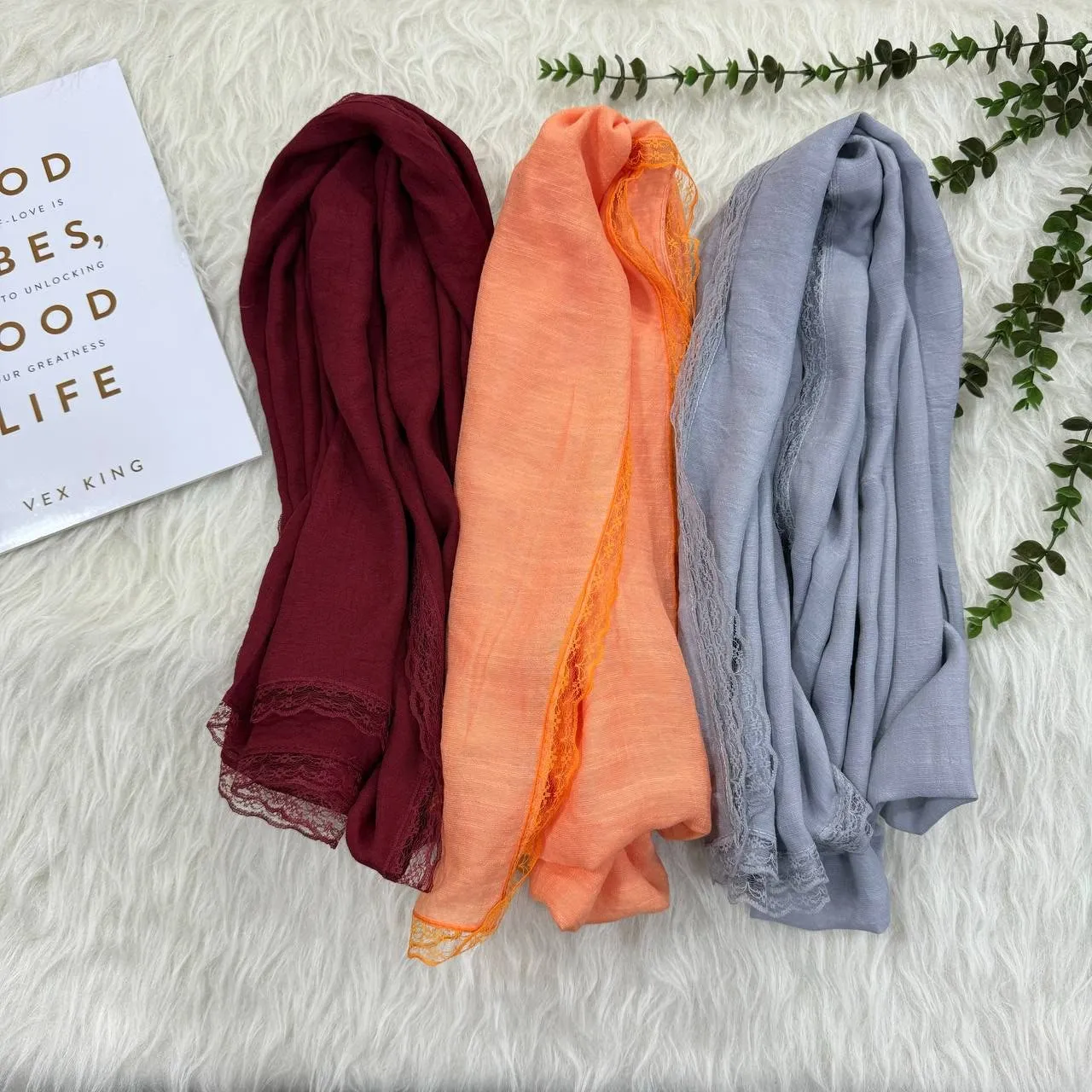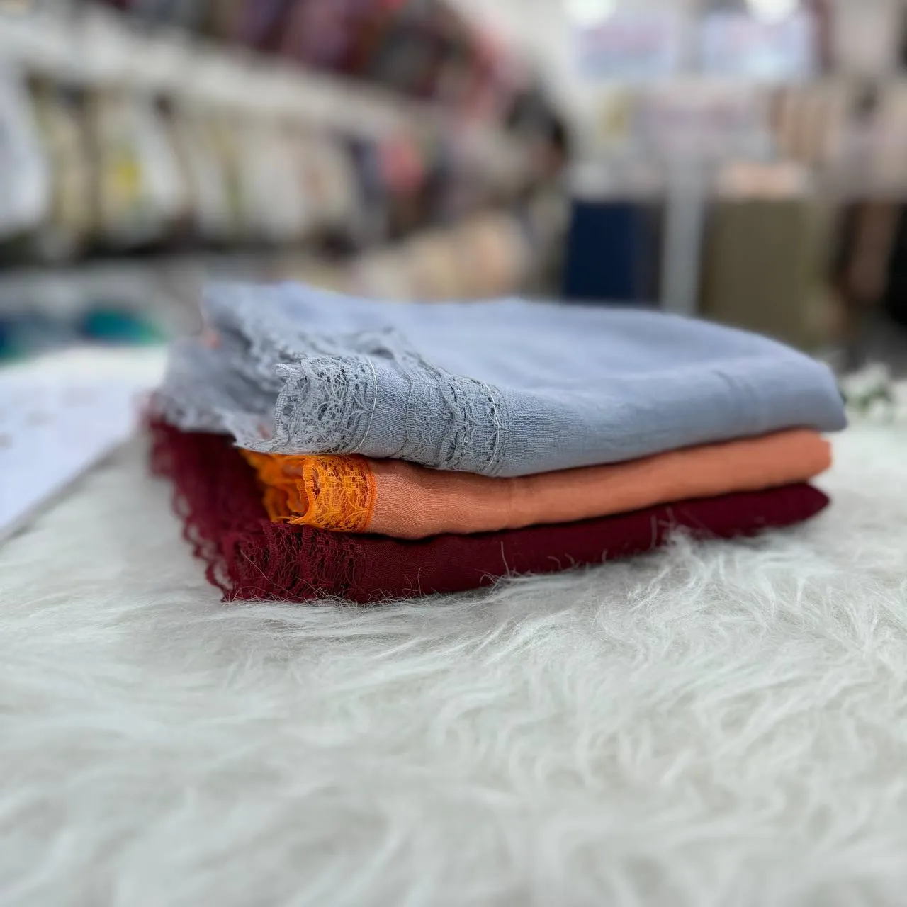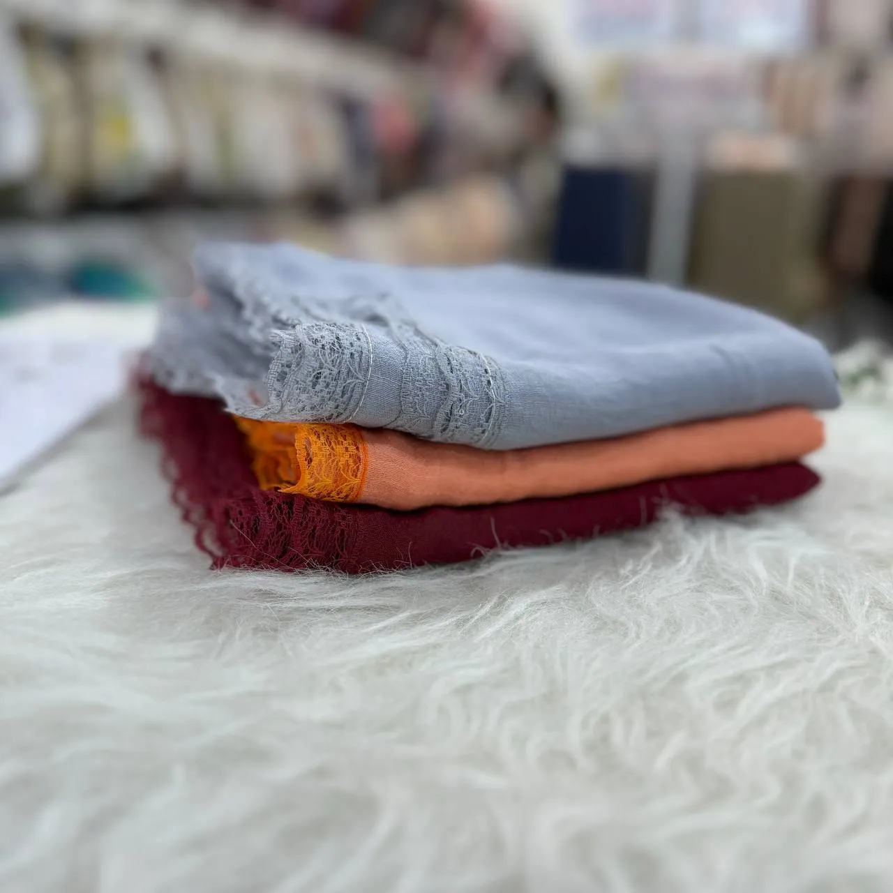شال نخی وال اسلپ دور دانتل قواره بزرگ 180x75 زنانه روزمره بدون آبرفت و چروک