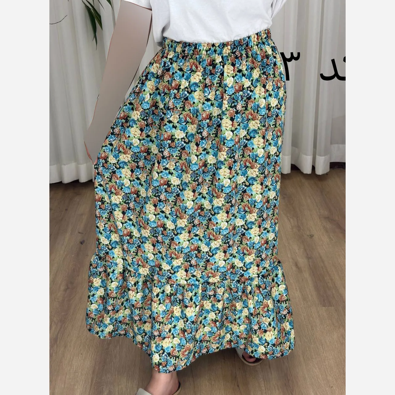 دامن نخ آلمان گلریز فری سایز تا 48 قد 95 سانتیمتر سایه نمیاندازد چهارفصل مناسب بارداری