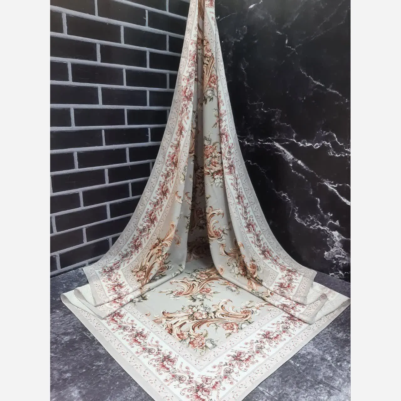 جنس این روسری از نخ کاستوم سیتو است و قواره بزرگ آن (140 در 140 سانتیمتر) امکان استفاده به روشهای متنوع را فراهم میکند. دور این روسری به صورت چرخدوز، دوام و زیبایی آن را تضمین میکند. 🧣