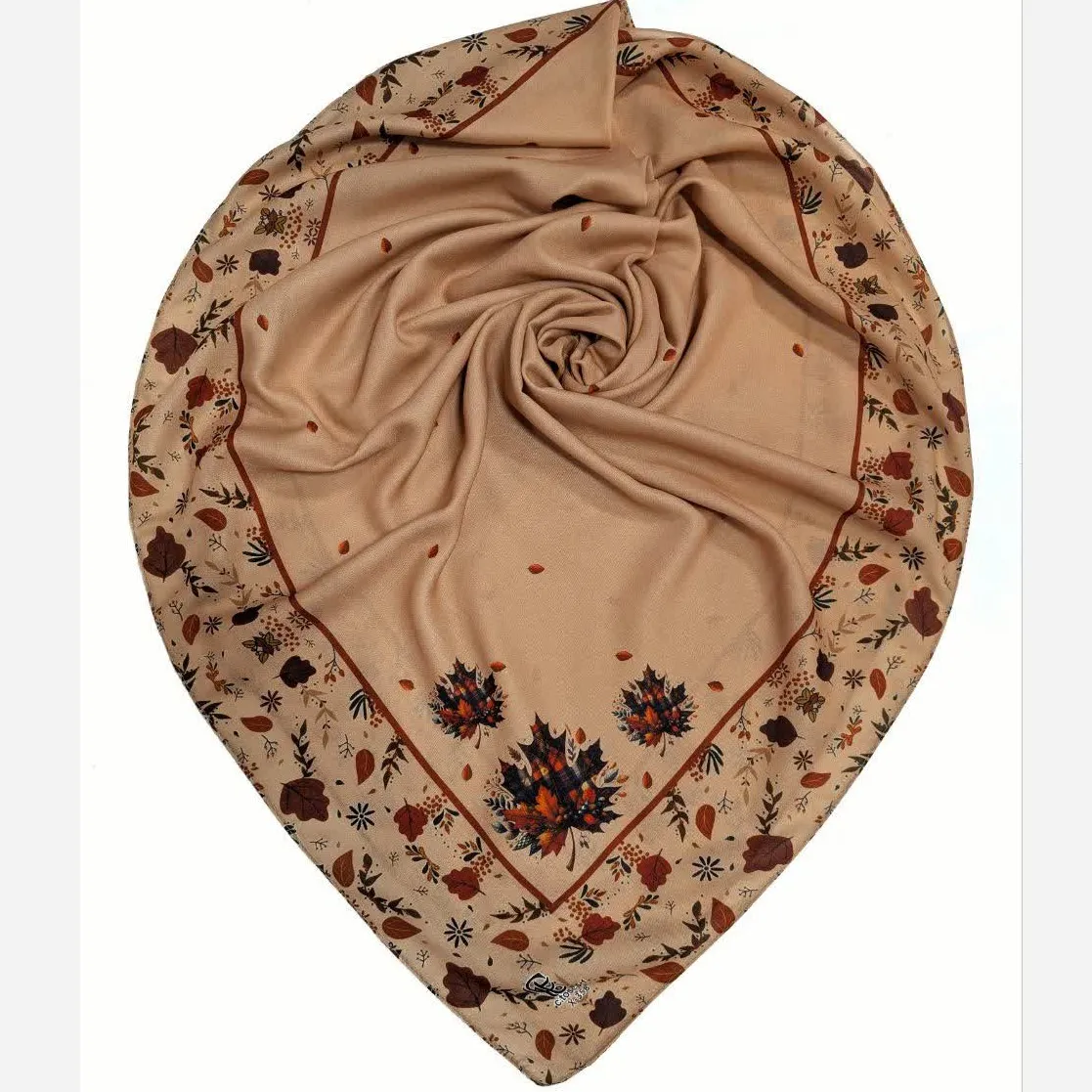 روسری نخی کاستوم طرح پانیذ قواره 110 نسکافه ای