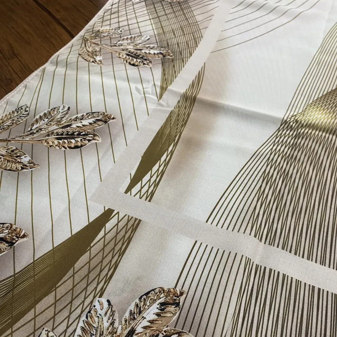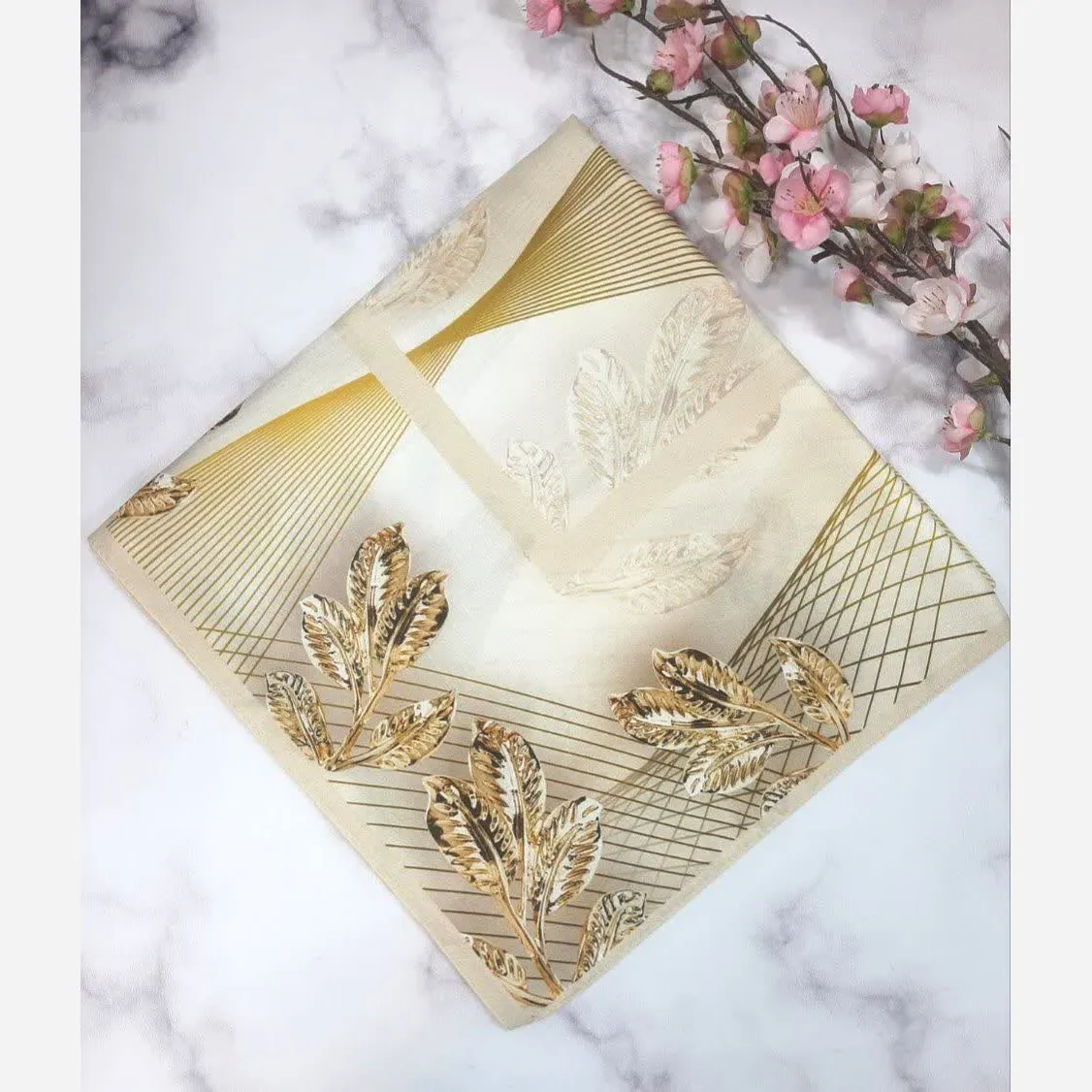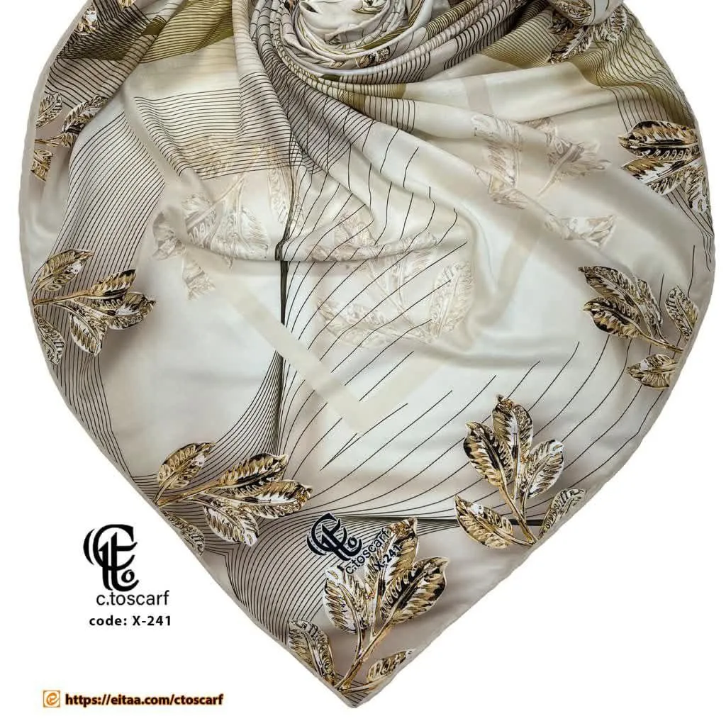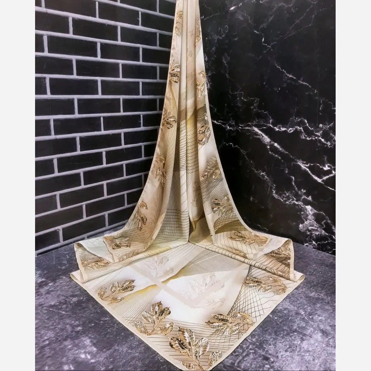 روسری نخی کاستوم طرح طلا قواره بزرگ 140 سانتیمتر دور چرخ دوز مزونی