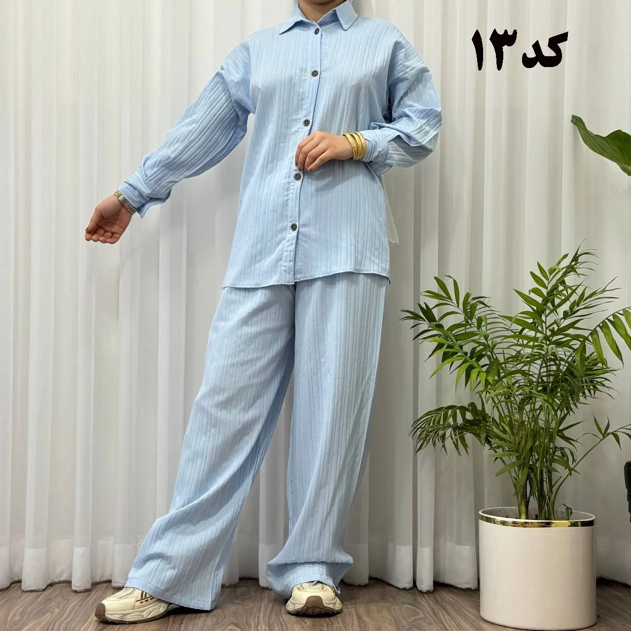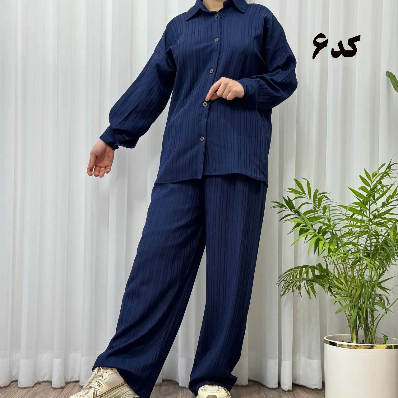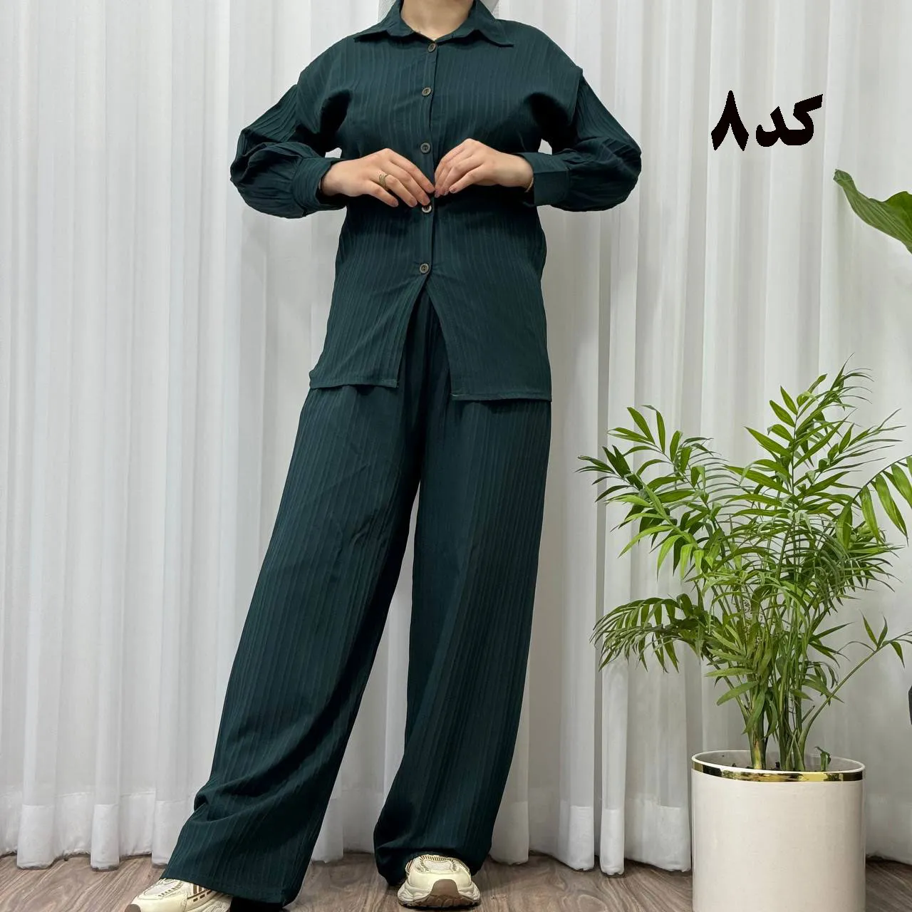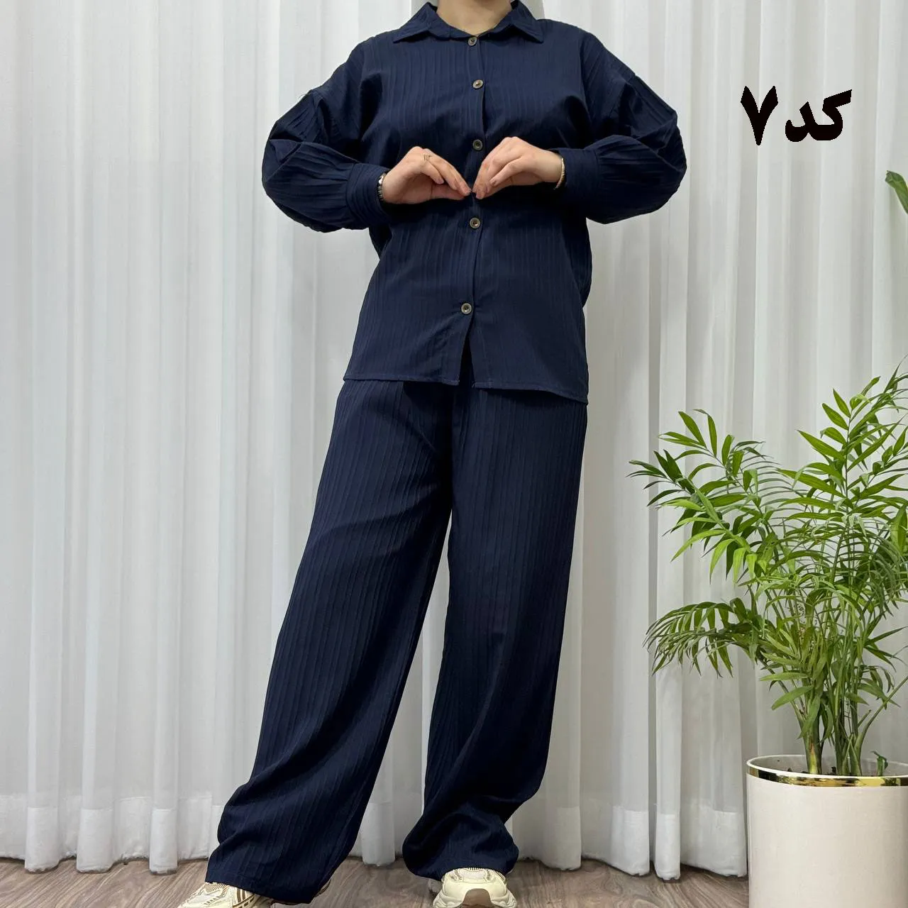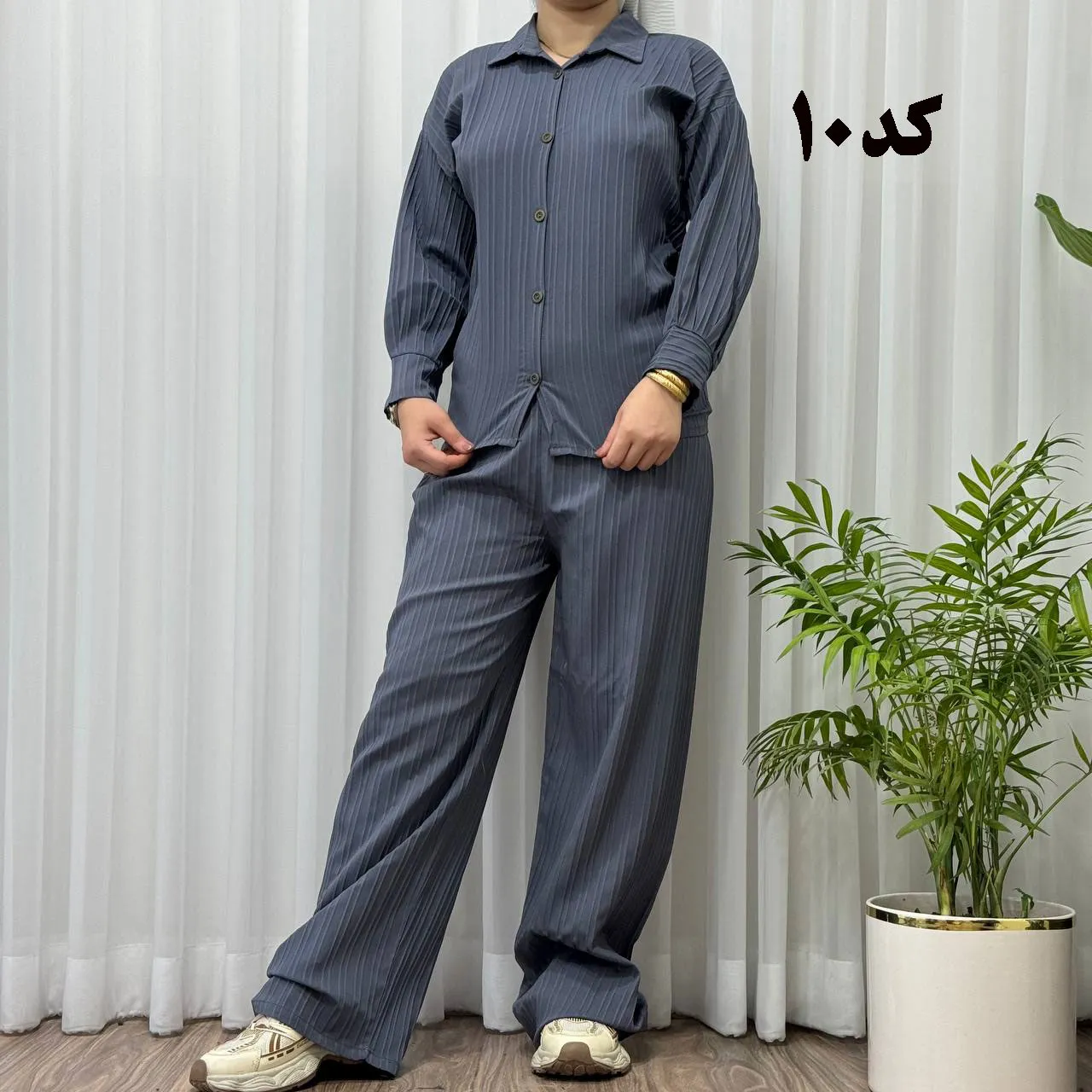 * **جلو دکمهدار:** جزئیات دکمه در جلوی بلوز، زیبایی و کاربردی بودن این ست را دوچندان کرده است.