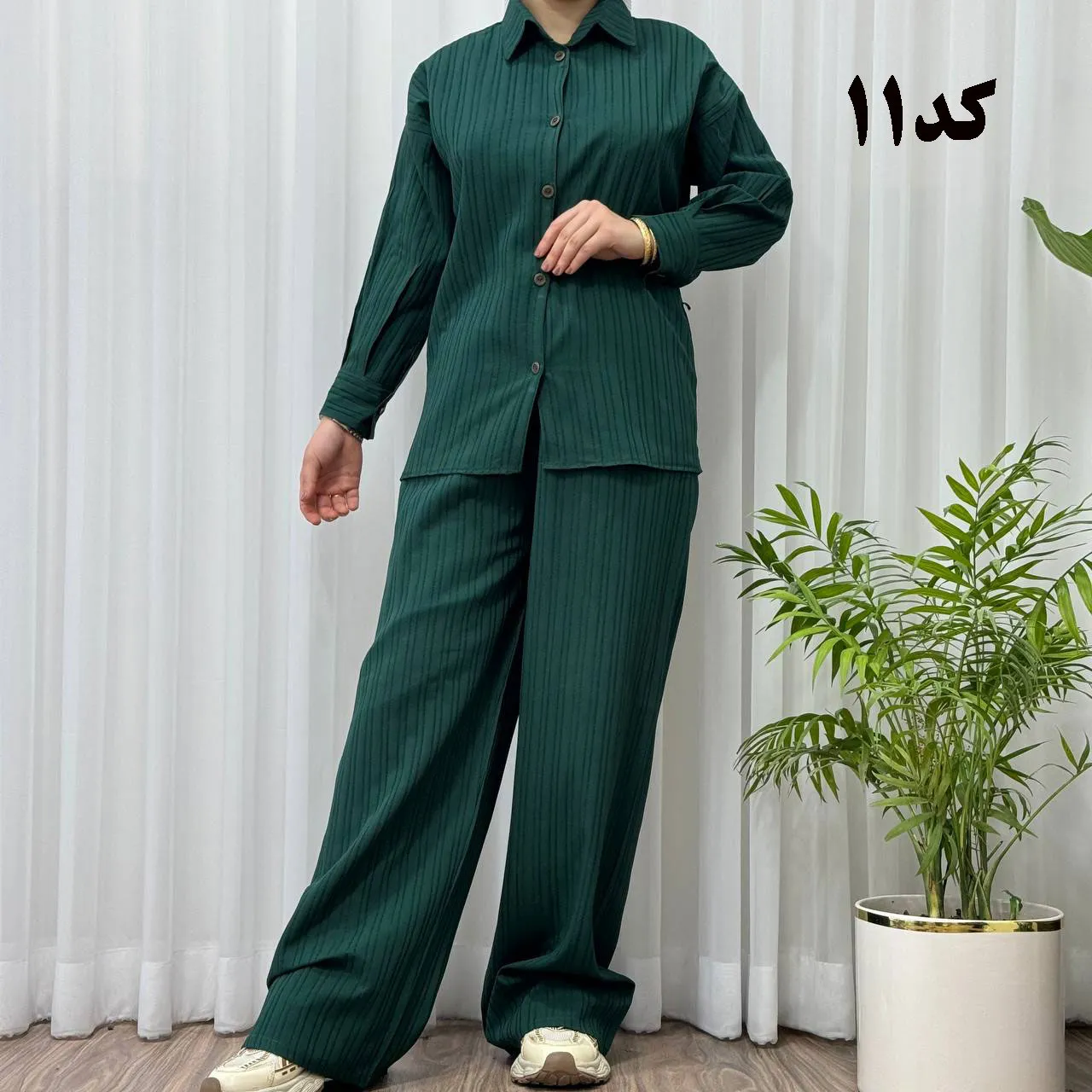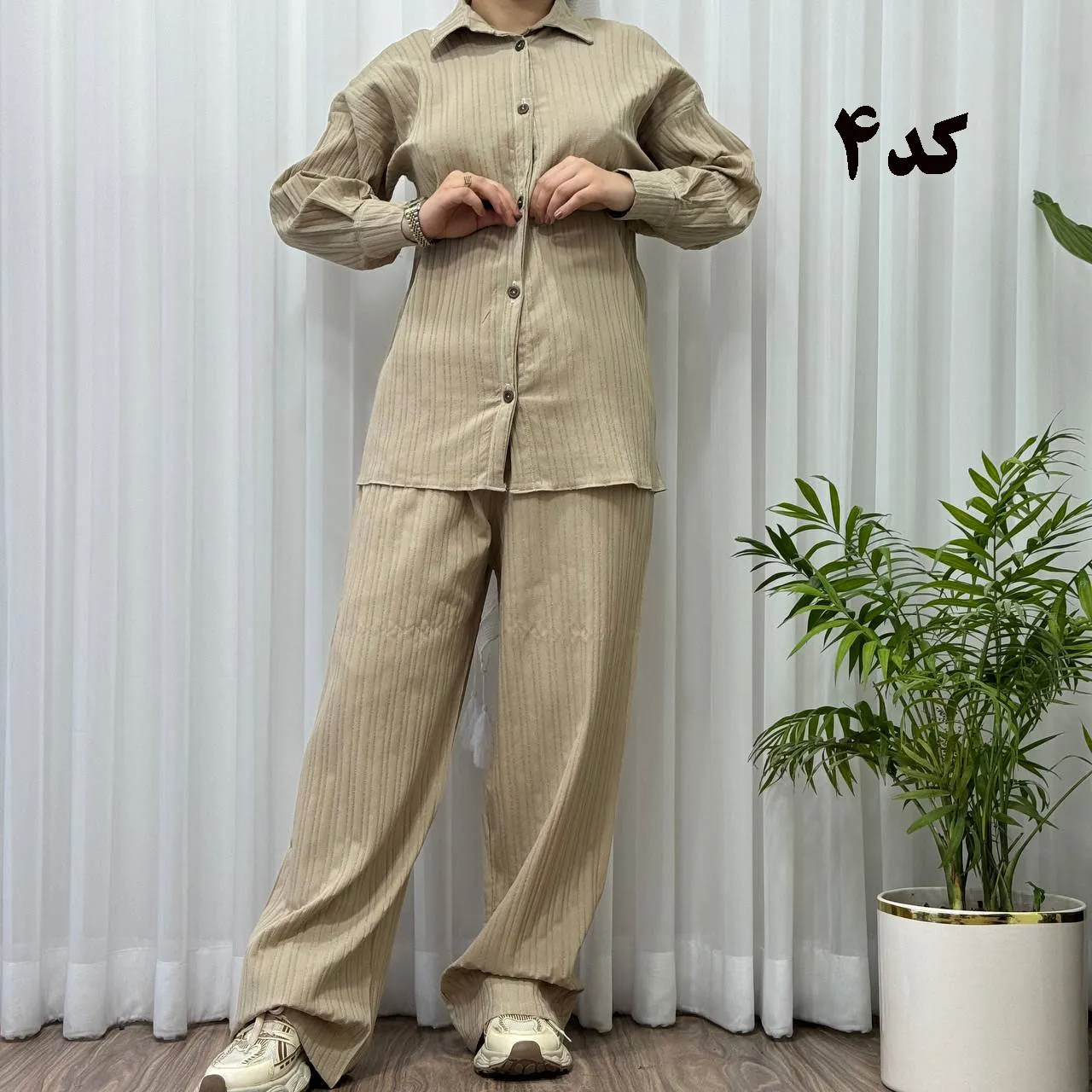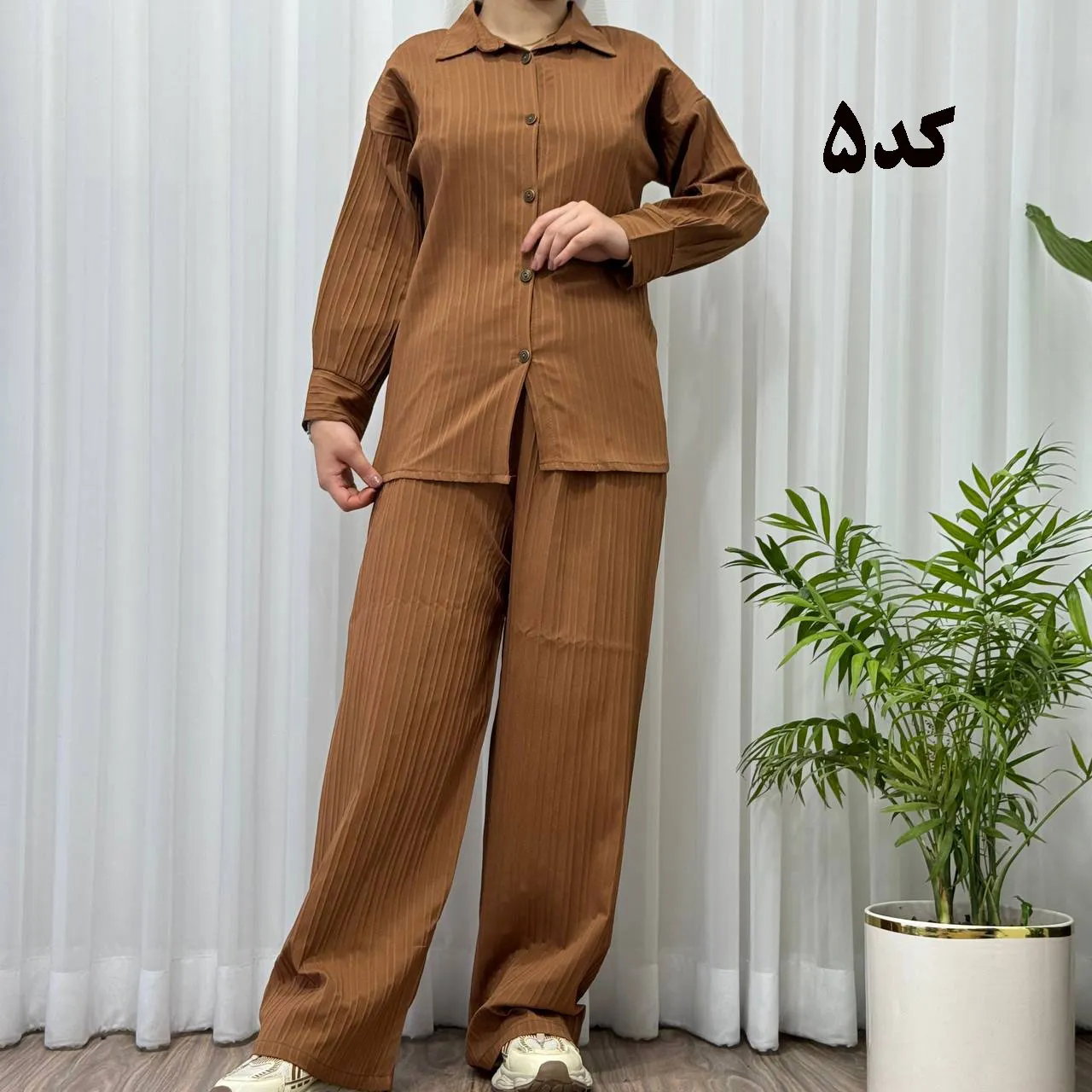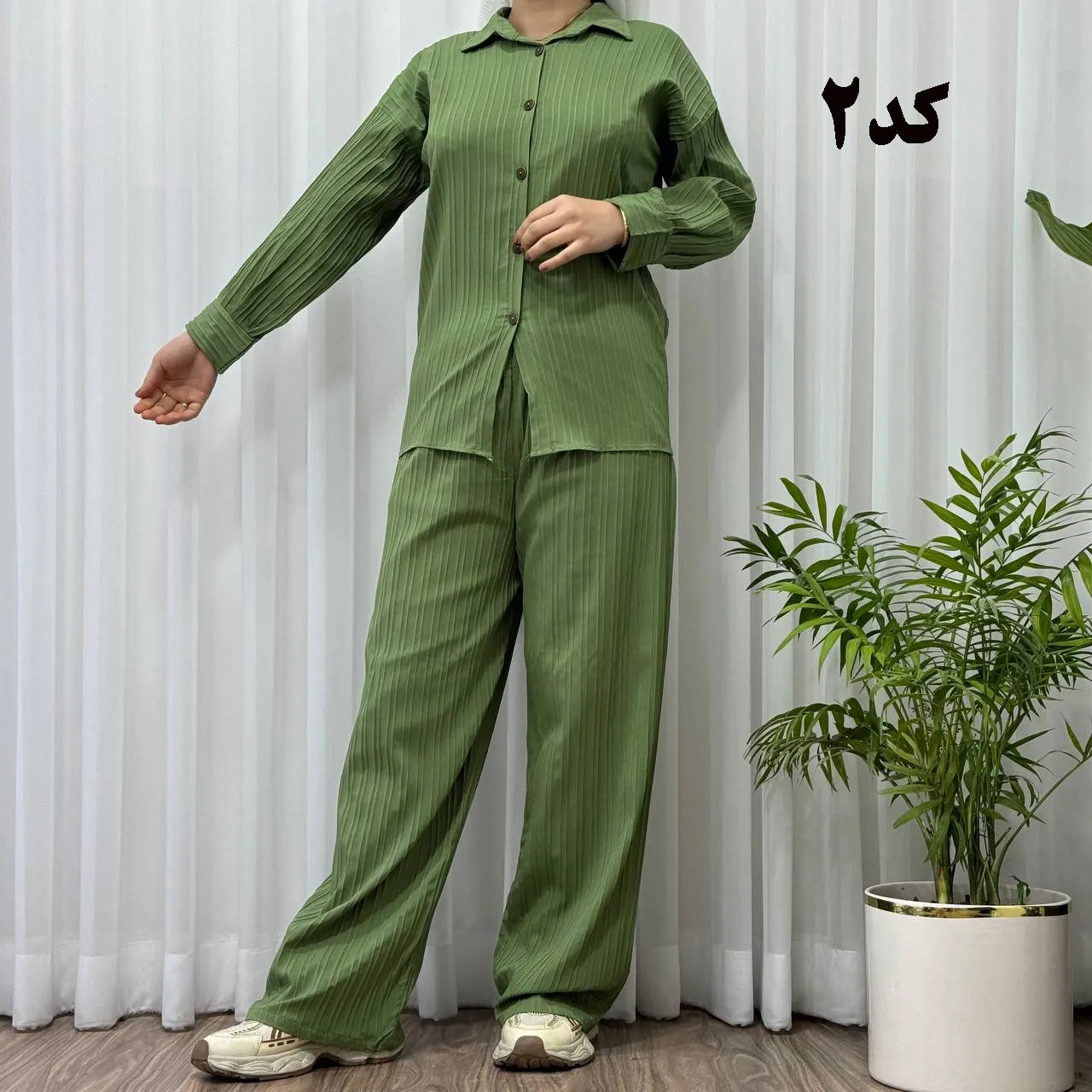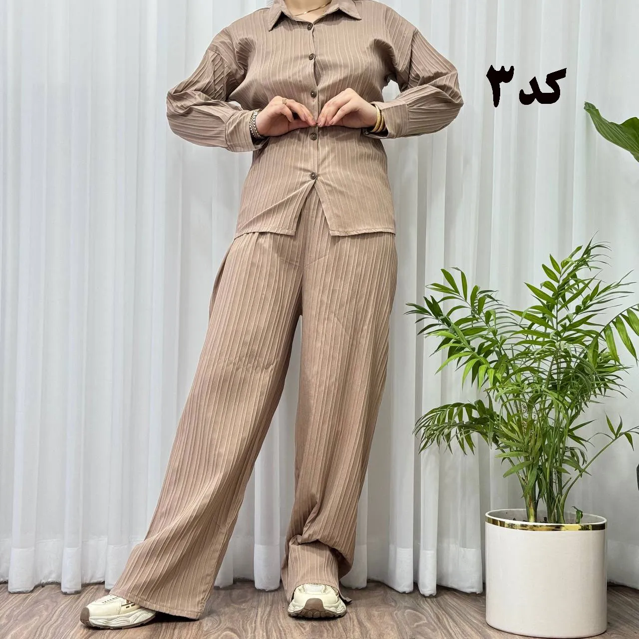 * **جلو دکمهدار:** جزئیات دکمه در جلوی بلوز، زیبایی و کاربردی بودن این ست را دوچندان کرده است.