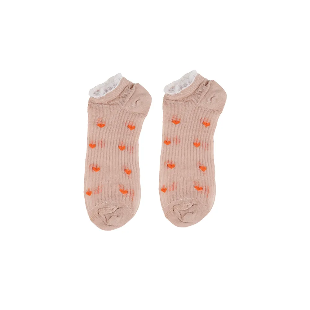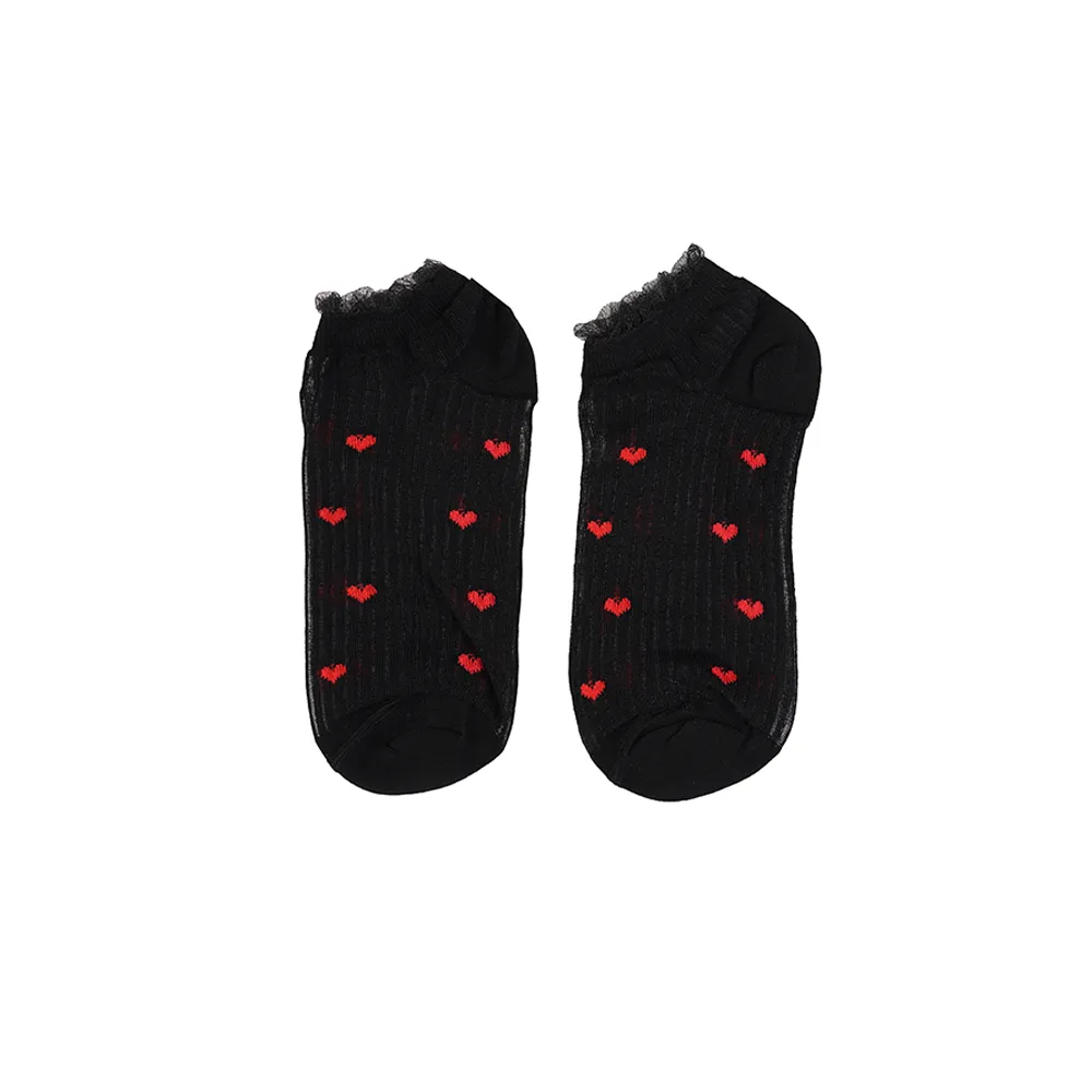 این جورابهای دوستداشتنی، انتخابی عالی برای تکمیل استایل روزمره شما هستند. طرح قلبی ظریف و لبه توردار، جلوهای خاص و زنانه به آنها میبخشد.